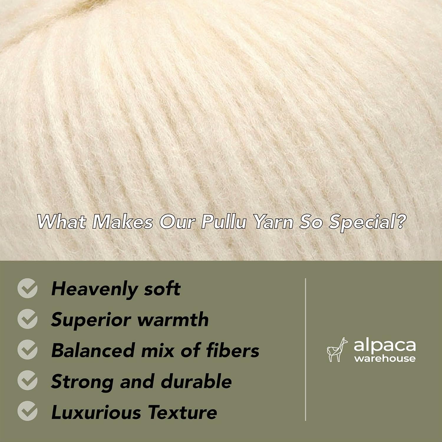 Pullu - Baby Alpaca Merino Wool Yarn Set of 3 Skeins (150 Grams) Worsted Weight - Sourced Directly from Peru - Heavenly Soft and Perfect for Knitting and Crocheting (Ivory)