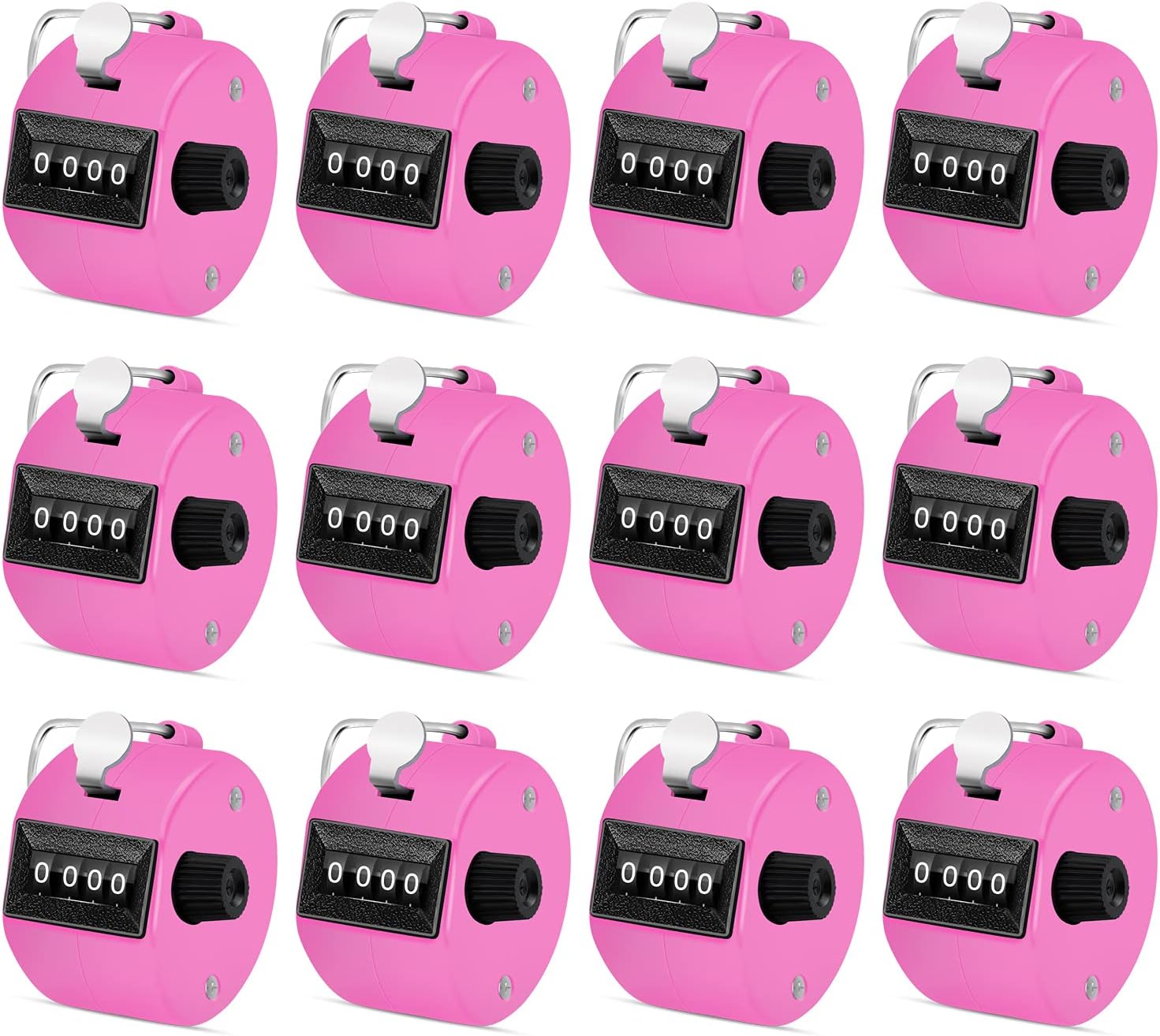 12 Pcs Hand Tally Counter 4-Digit Lap Counter Clicker, Manual Mechanical Handheld Pitch Click Counter with Finger Ring for School Golf & Knitting Row Croche