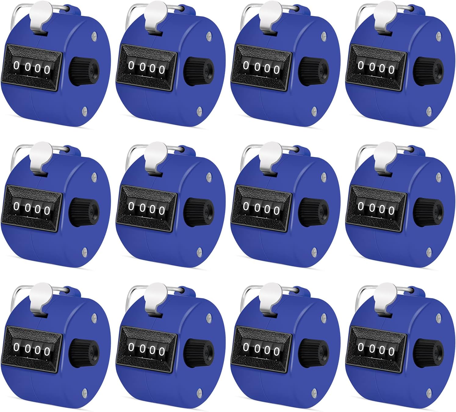 12 Pcs Hand Tally Counter 4-Digit Lap Counter Clicker, Manual Mechanical Handheld Pitch Click Counter with Finger Ring for School Golf & Knitting Row Croche