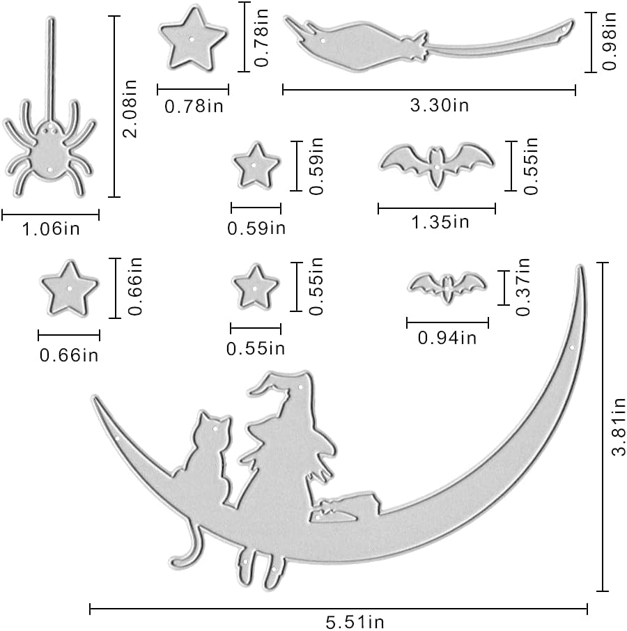 Metal Halloween Die Cuts Moon Cat Spider Star Witch Cutting Dies Embossing Stencil Template for Card Making Scrapbooking Paper Craft Album Stamps DIY Halloween Décor