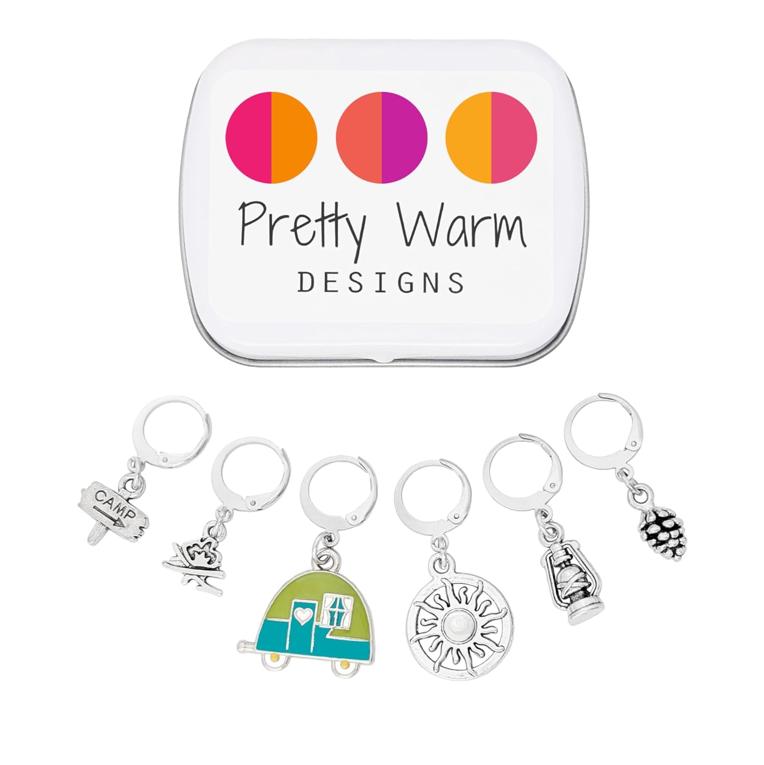 - Let’s hit the road! Cooler packed, playlist on, and your project rides shotgun. At the campsite, you clip in the crew: the camp sign marks “start here,” the camper rolls to the next section, the campfire flags decreases, the sun celebrates repeats, the lantern saves a spot to revisit, and the pinecone keeps sleeves or rows in check. Stitch a few rounds by the fire, watch the stars come out, then pop the markers back in the case—ready for tomorrow’s hike and more campsite crafting.