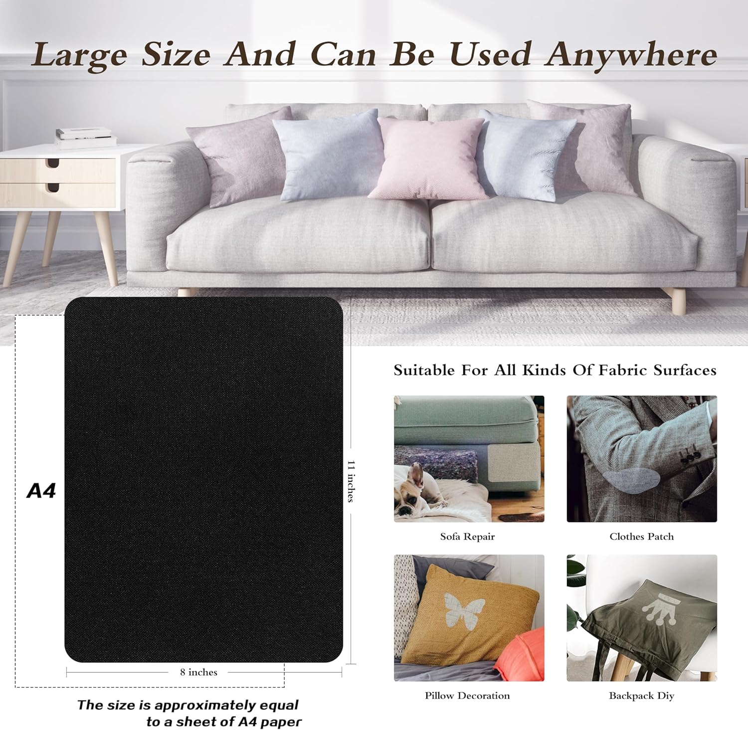 KING MOUNTAIN Fine Linen Repair Patches, Self-Adhesive Linen Fabric Patches, 8X11 inch Extra Size, Multi Color, Can be Used for Linen Sofa Repair and Linen Clothes Repair(Black,8" x 11")