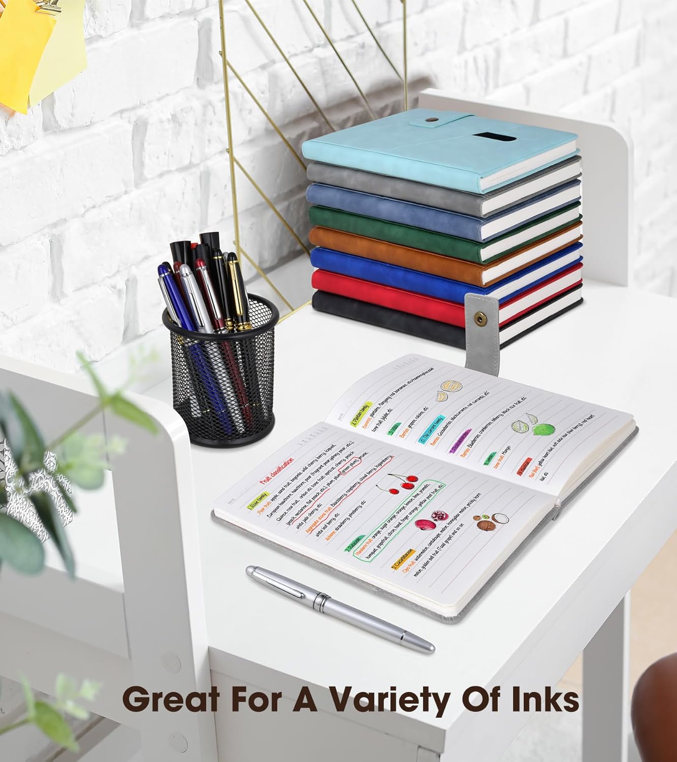 - 【PREMIUM THICK PAPER】:5.9 X 8.4 inch journal notebook with 200 pages 100 gsm lined paper, thicker 30% than normal, this black notebook is designed to avoid feathering and the paper is ink-proof, suit for most pens, but the wettest pen inks. Archival-quality pages made from acid-free paper-resists damage from light and air, the cream paper is easy on eyes.Let your creation more freedom on the wide ruled journal to write in.