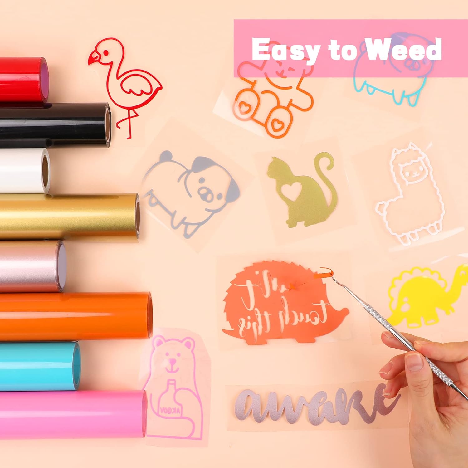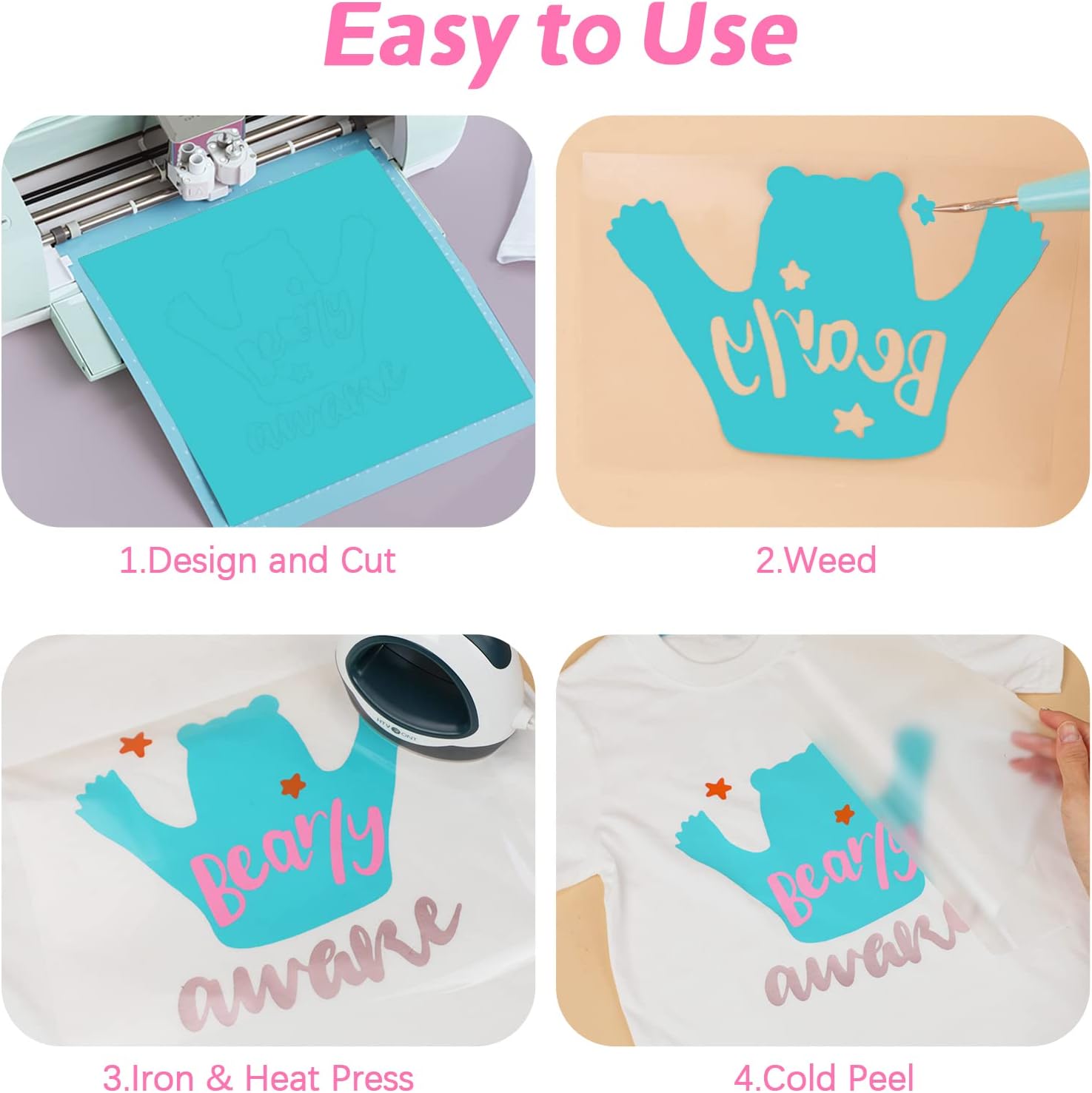 - 【EASY TO CUT & WEED & TRANSFER】 Our premium quality heat transfer vinyl will save your time which you may waste on each image or letter, because you can cut and weed easily through the designs just right.The iron on vinyl is sensitive to temperature and pressure, which can be heat transferred on any t-shirt easily