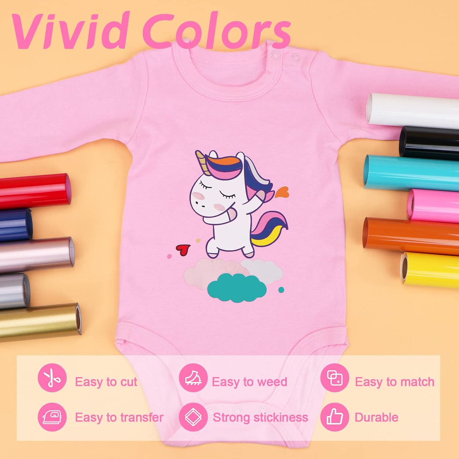 - 【12 inches x 5 Feet】 HTVRONT htv vinyl rolls are easy and convenient to cut into different size of art designs or logos or letters and perfect for 12x12" and 12x24" cutting mats. Our iron on vinyl are compatible for all cutter machines