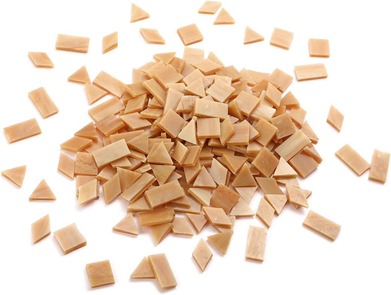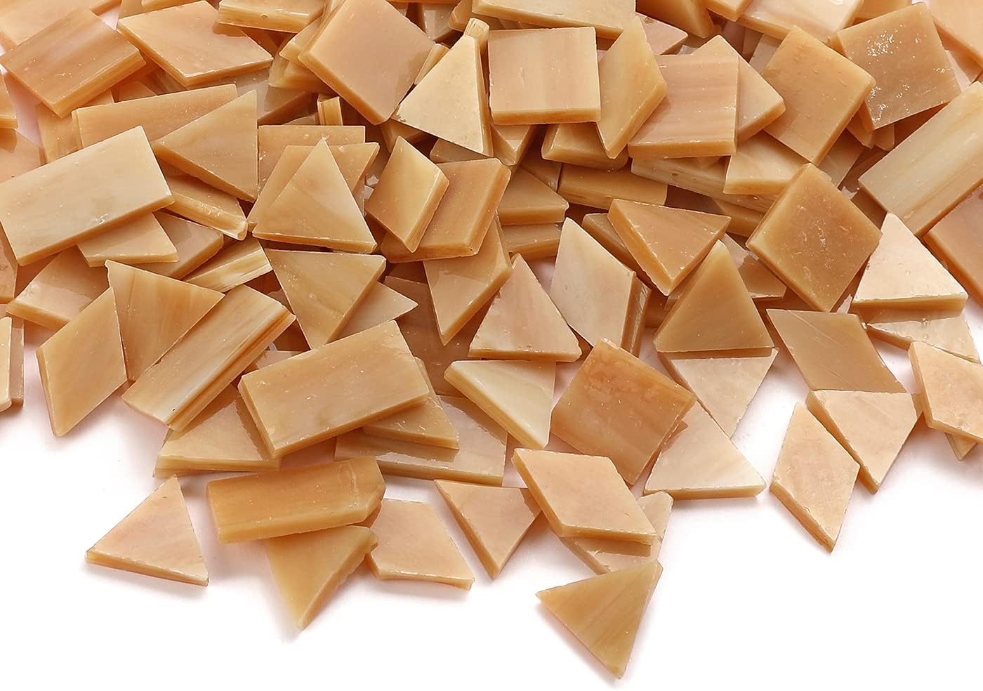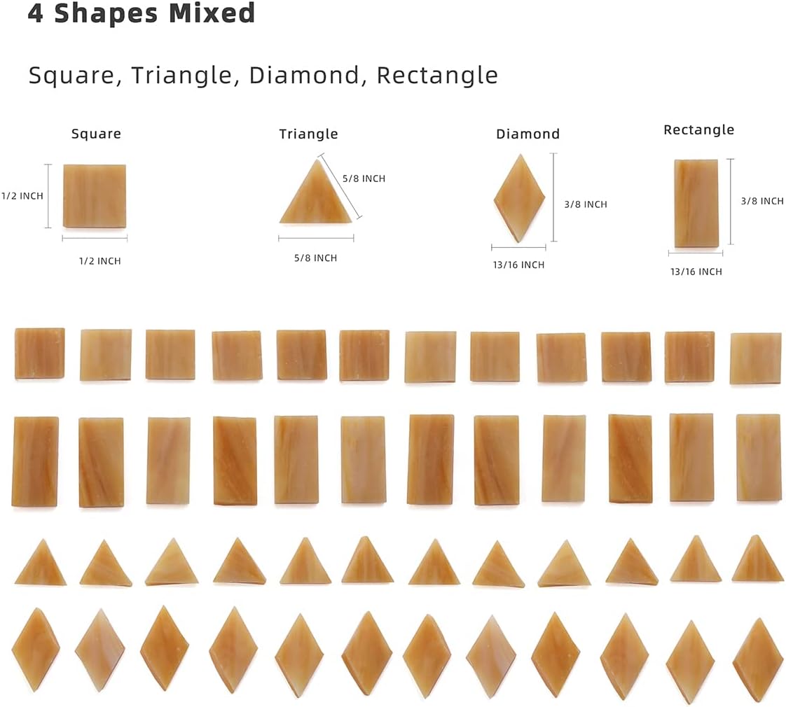 Lanyani Glass Mosaic Tiles - Mixed Colorful Tiffany Stained Glass Pieces, 200 Pieces - Square/Rectangle/Diamond/Triangle - Tan