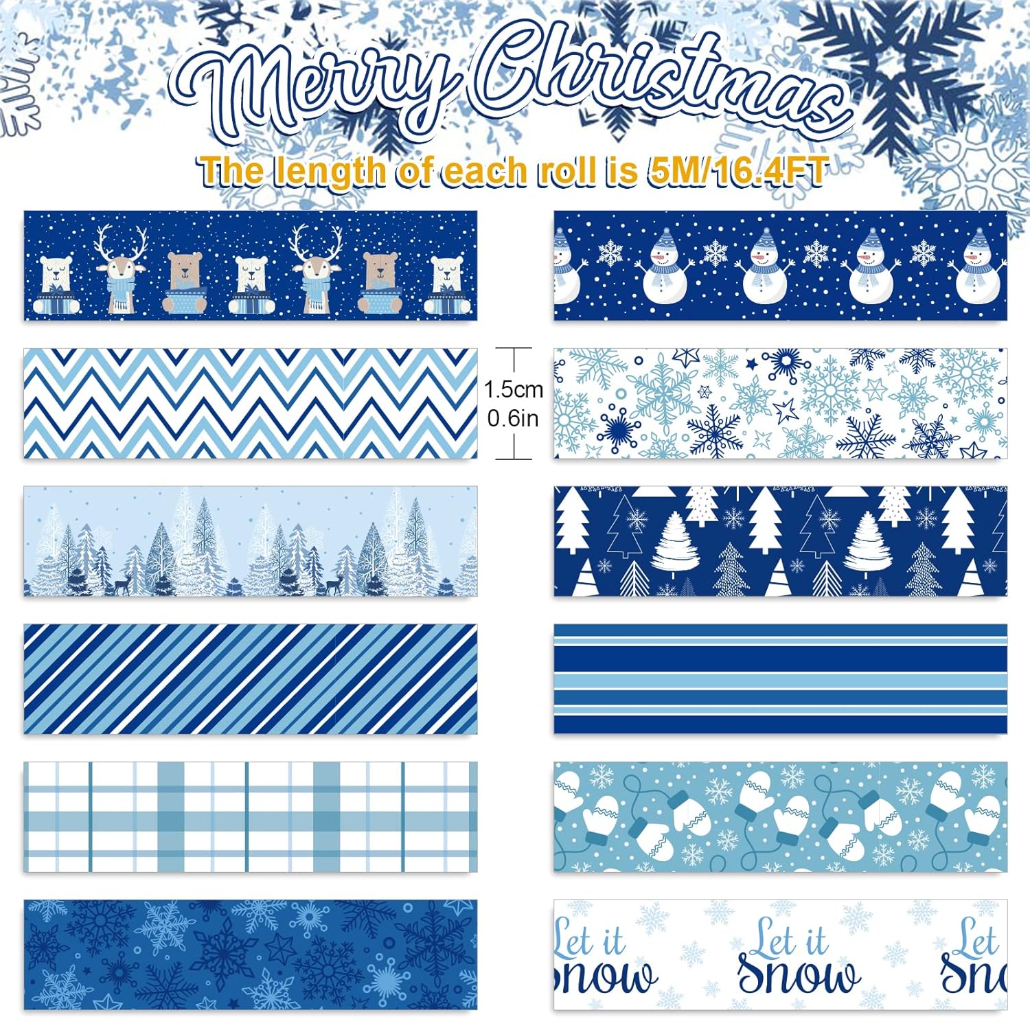 - Blue Series - Our washi tapes take blue as the theme color, patterned with popular holiday elements, such as snowflakes, reindeer, Xmas tree, snowman, plaids, stripe, romantic and quietly, matching with the topic of winter and Christmas, great decoration to match with Christmas gifts.
