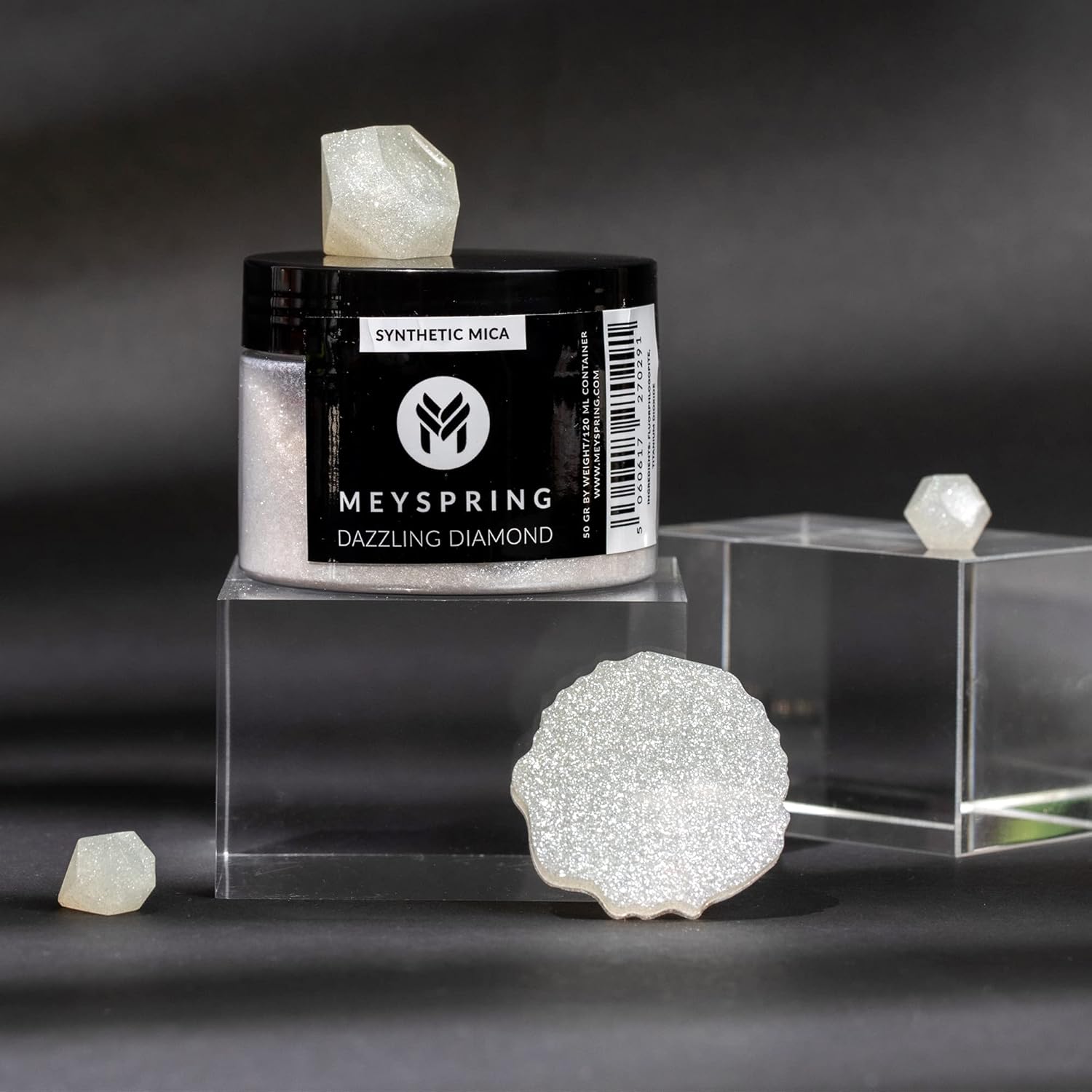 MEYSPRING Dazzling Diamond - White Glitter Mica Powder - Resin Glitter - White Mica Powder for Epoxy Resin - Resin Color - Mica Powder for Lip Gloss - Glitter for Candle Making - Glitter Powder