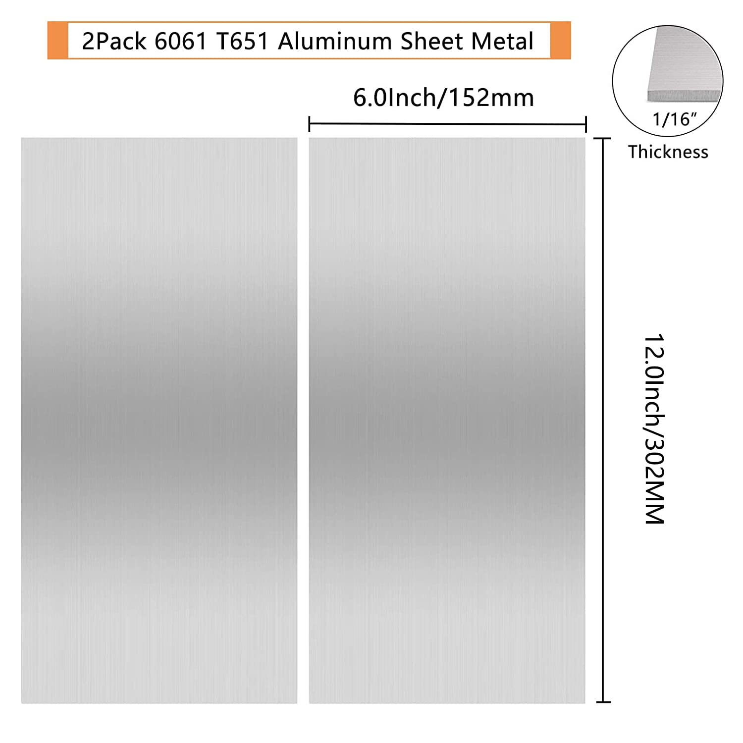 2Pack 6061 T651 Aluminum Sheet Metal 6" x 12" x 1/16"(0.06”) Flat Plain Thin Aluminum Plate Covered with Protective Film, 1.5mm Heat Treatable Rectangle Aluminum Metal Plate for Crafting, lndustry