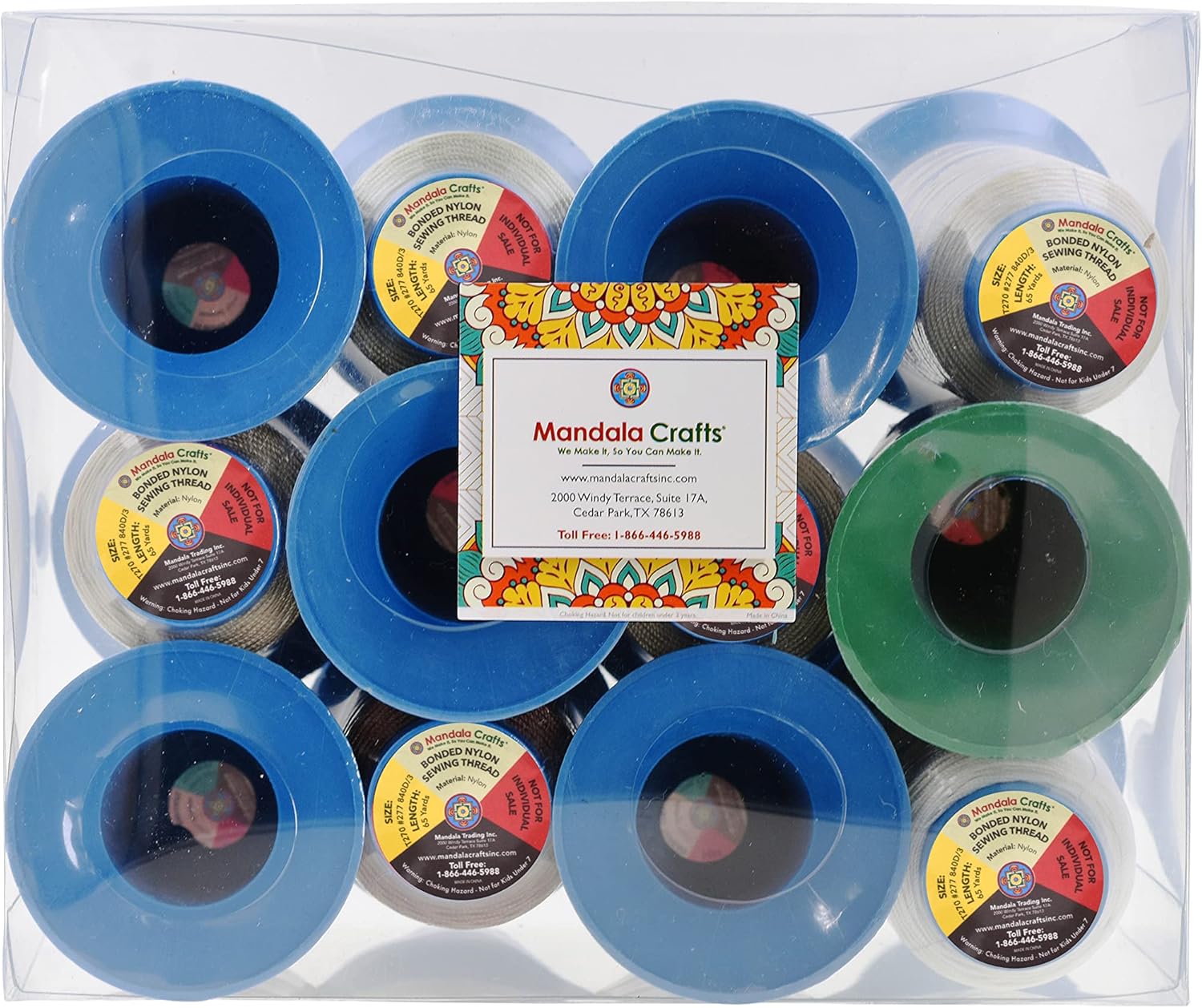 Mandala Crafts Bonded Nylon Thread 12 Neutral Colors Heavy Duty Sewing Threads - 780 YDs Size 277 840D T270 Tex 270 Thread for Leather Jeans Weaving Outdoor Marine Upholstery Threads