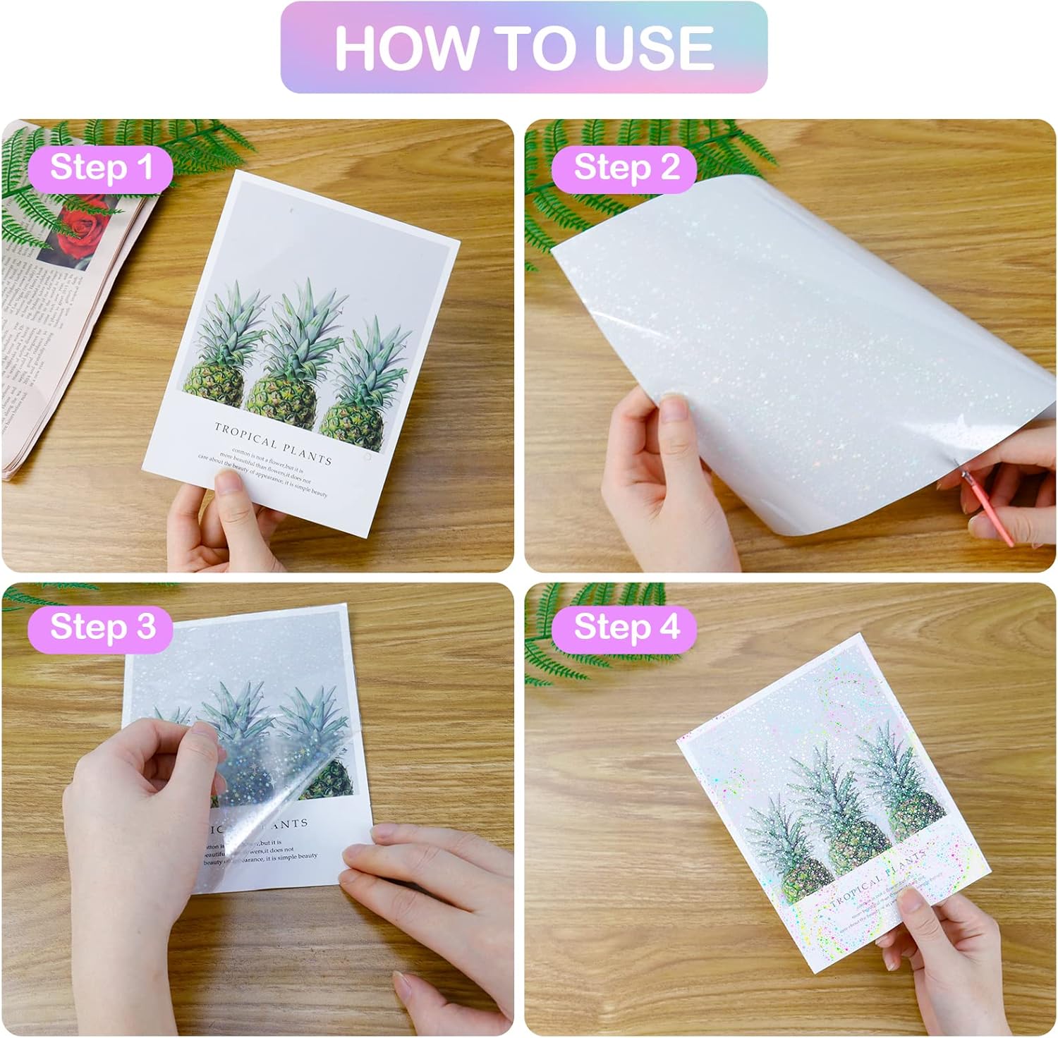 - VIBRANT-COLOR: Designed with glitter star-pattern, the self-adhesive holographic-sticker paper is perfect to be added to the surface of photos. It will present different colors and refléctions according to light and angle, looking like a rainbow shining in the sun.