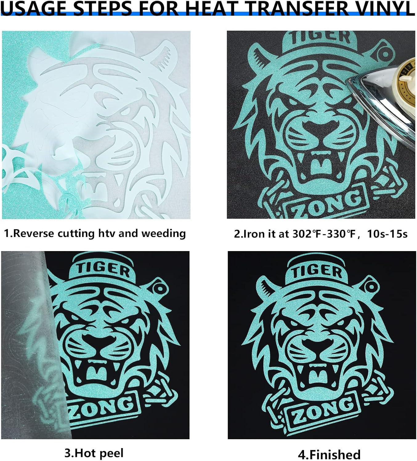 - EASY TO CUT & WEED & TRANSFER: Our luminous Light blue glitter iron on vinyl rolls is sensitive to temperature and pressure, which can be quickly and easily to weed and peel. It is compatible with all cutter machines, most heat presses and household irons on the market, and perfect for 12x12" and 12x24" cutting mats. You can easily apply adhesive backing HTV to fabric using a hot iron or hot press. Please note that it is warm peel