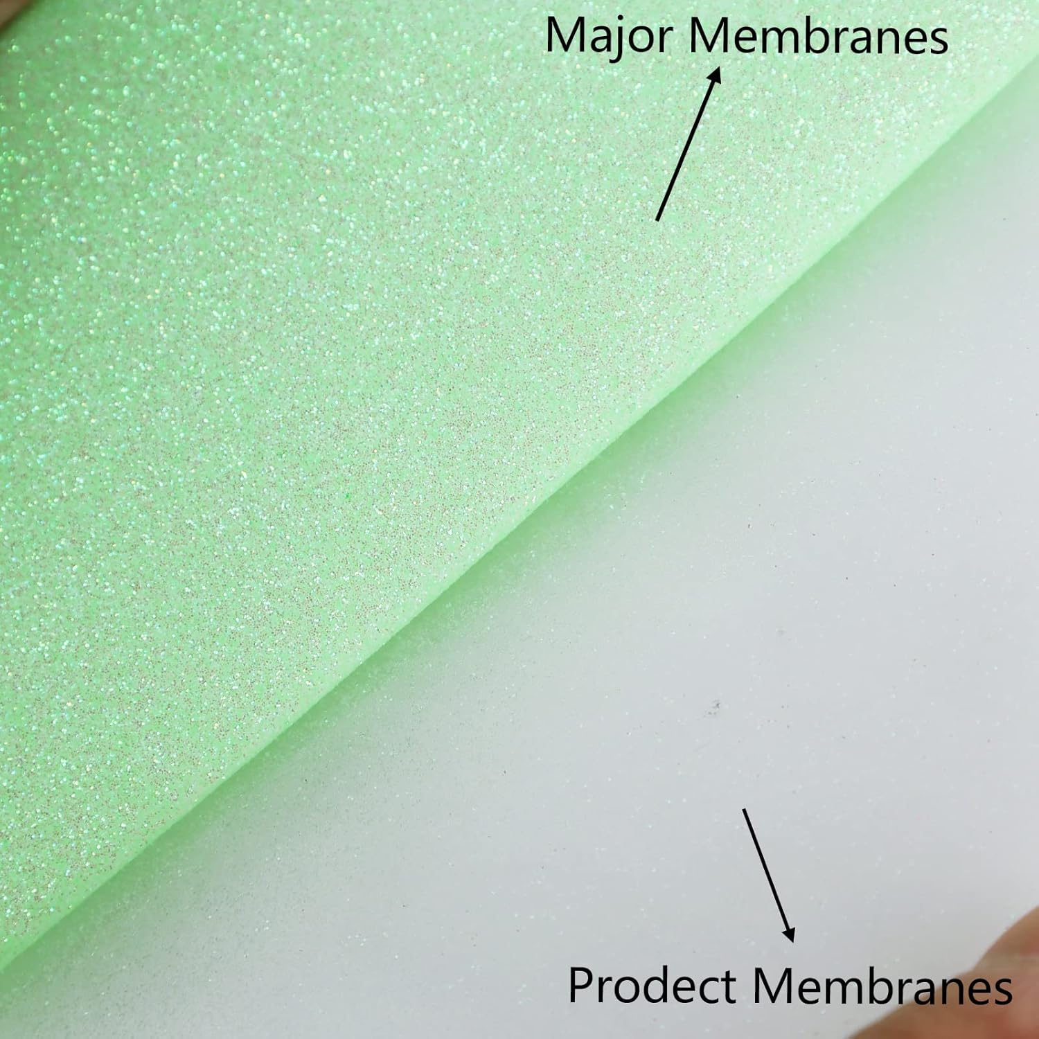 - GLOW IN THE DARK GLITTER PU HTV VINYL ROLL: Our luminous light green glitter Heat Transfer Vinyl is made of high-quality and eco-friendly PU vinyl material, incredibly strong, durable, vibrant fine, and stretchy. Our luminous glitter vinyl use high quality glitter, sealed well, no residue, no powder. And after absorbing enough ambient light, it has luminous effect at night. The surface is very smooth after being treated with a special process, which makes it easy to layer and apply