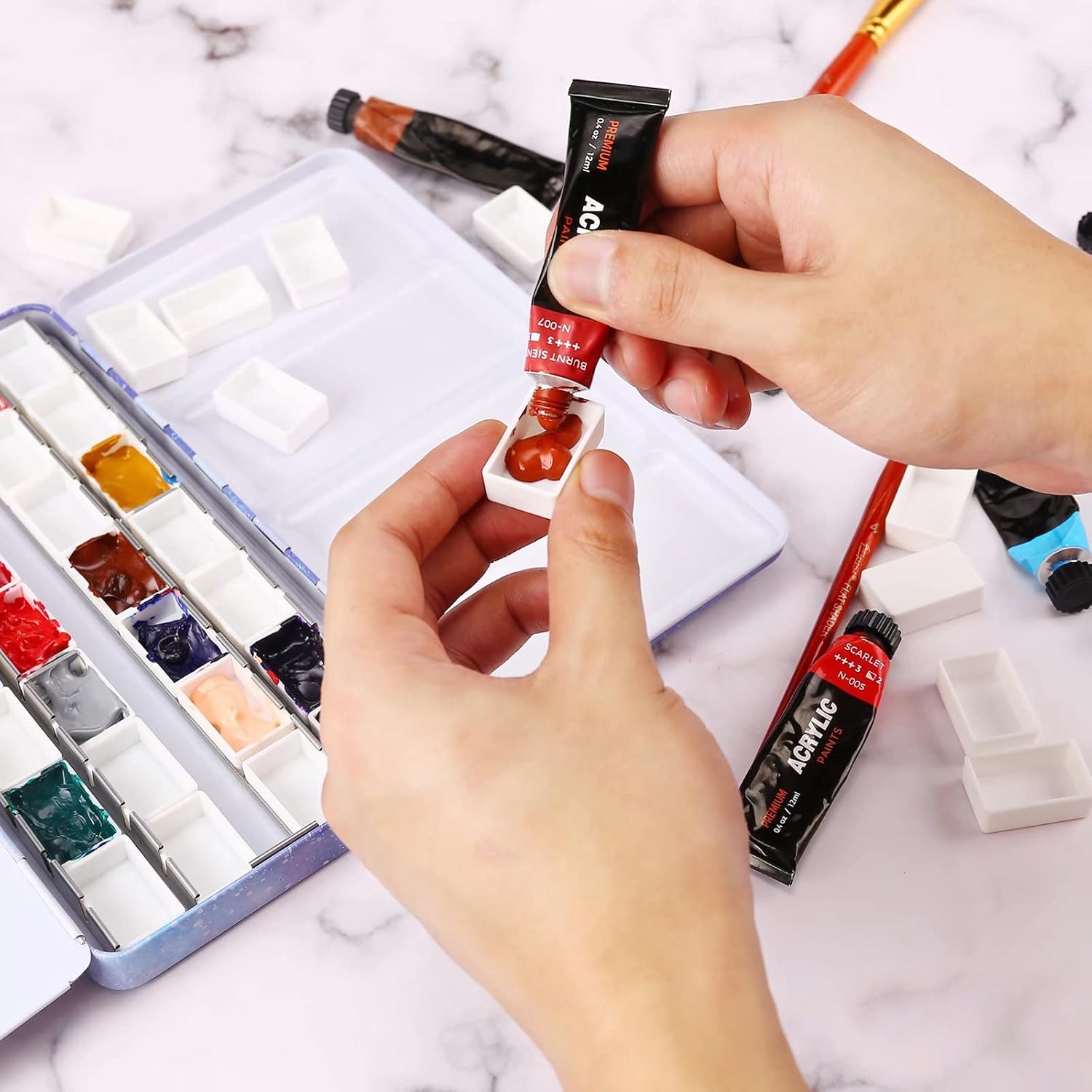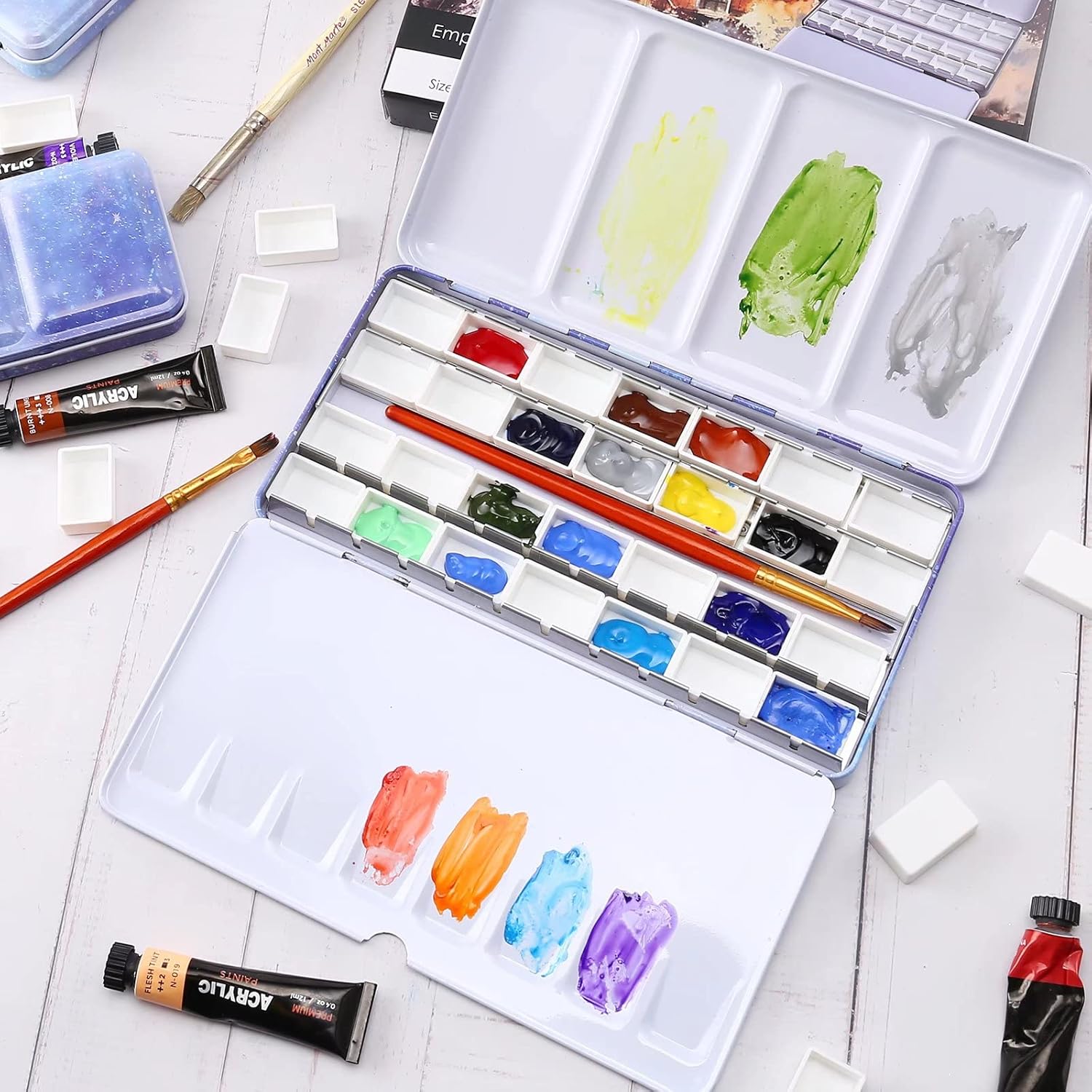 - 【WIDE APPLICATIONS WATERCOLOR PALETTE】Includes 28 empty full pans which are detachable, hold up to 3.6ml of watercolor paint. An ideal empty watercolor palette tin for home, studio, plein air or field sketch painting, can be easy to DIY your travel watercolor palette.
