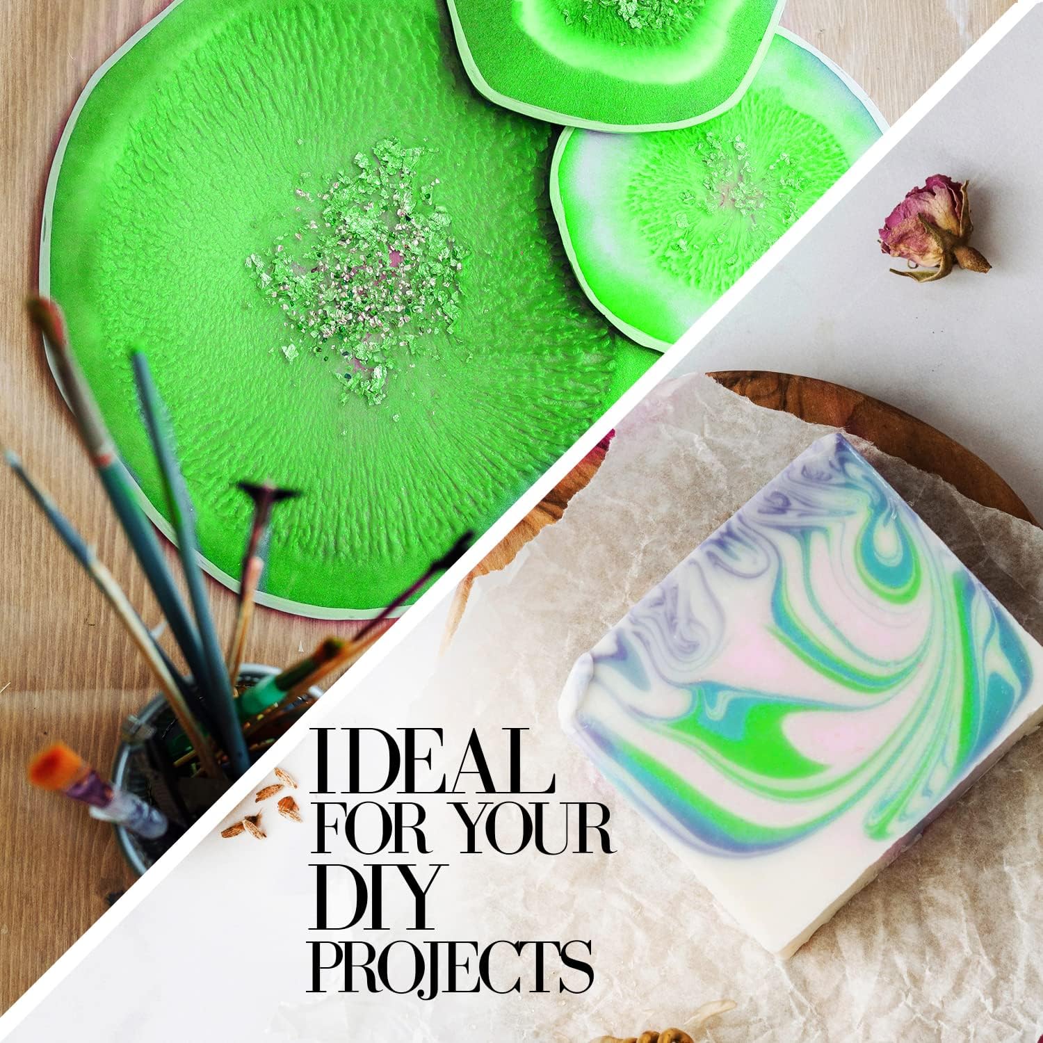 - Cosmetic Grade: Our pigment powder is made of 100% safe-to-use cosmetic grade ingredients, approved for use in cosmetics. Use it to add sparkling green effects to your epoxy resin, gel nails, lip gloss, soaps, bath bombs (use POLYSORBATE 80 in bath bombs to avoid stains), slime, polymer clay, or makeup