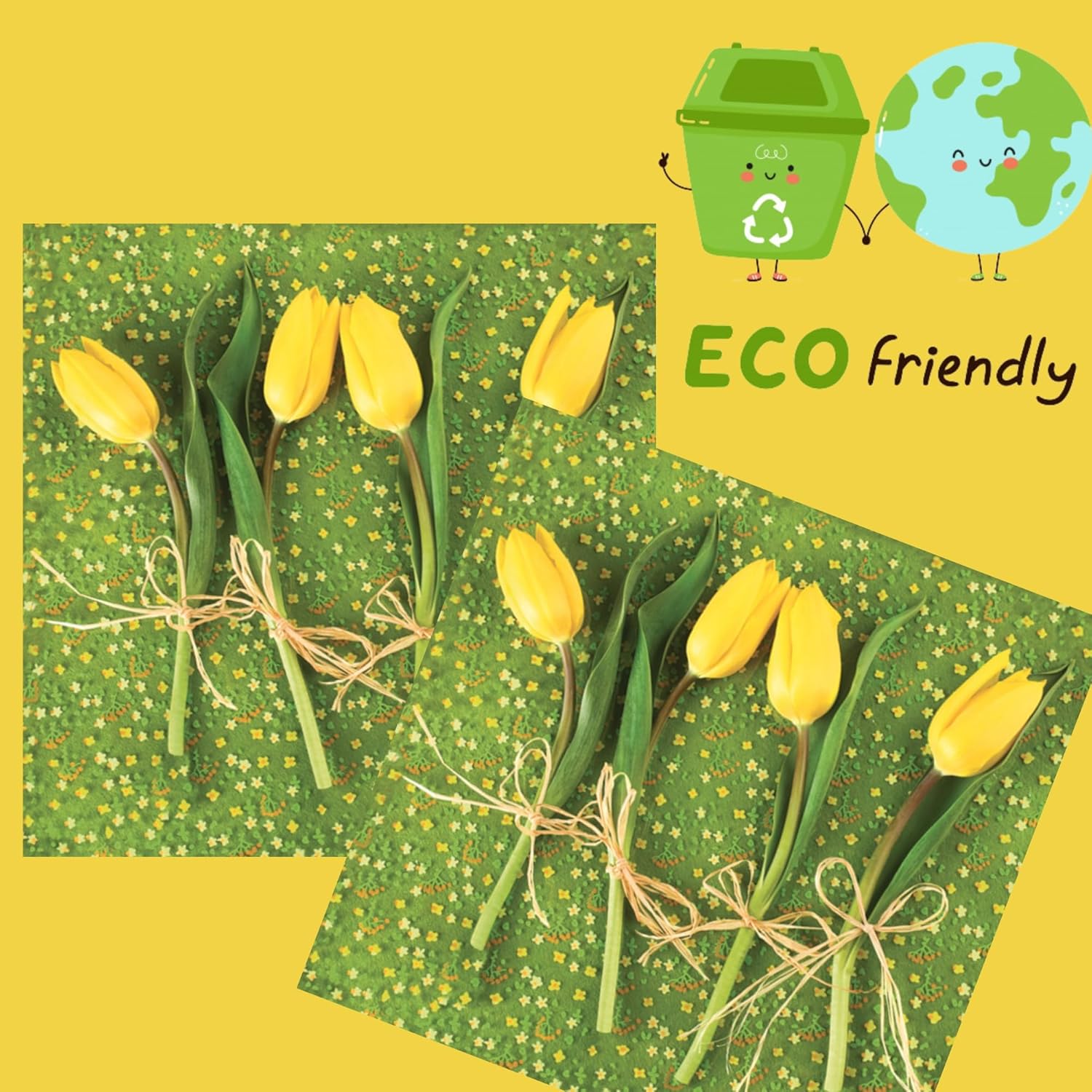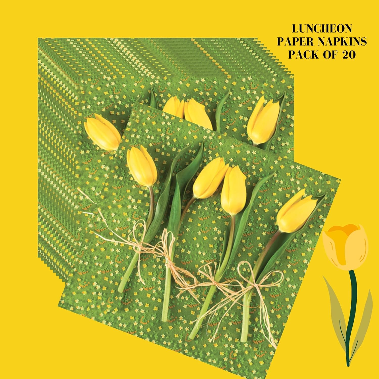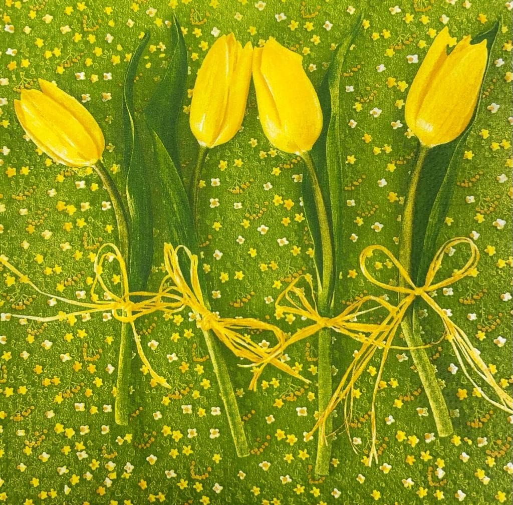 20-ct 13x13 Flowers Paper Luncheon Decoupage Napkins, 3-Ply Servilletas Printed Tulips Flowers Cocktail Napkin for Art, Dinner and Party, Disposable Napkins Decor
