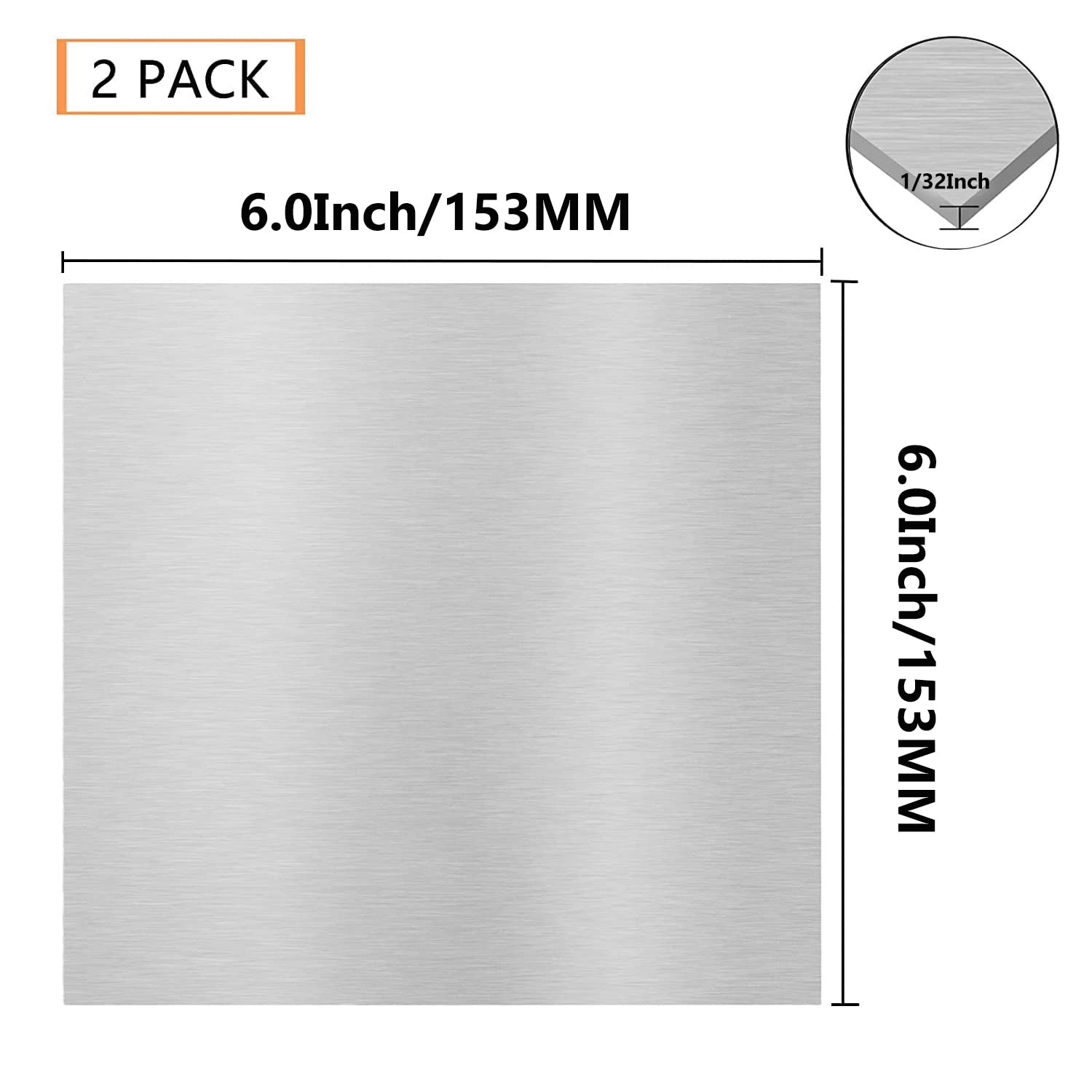 - 【6061-T651 Aluminum Sheet Size】2 Pack 6”(L)x 6”(W)x 1/32”(0.8mm) (thick)