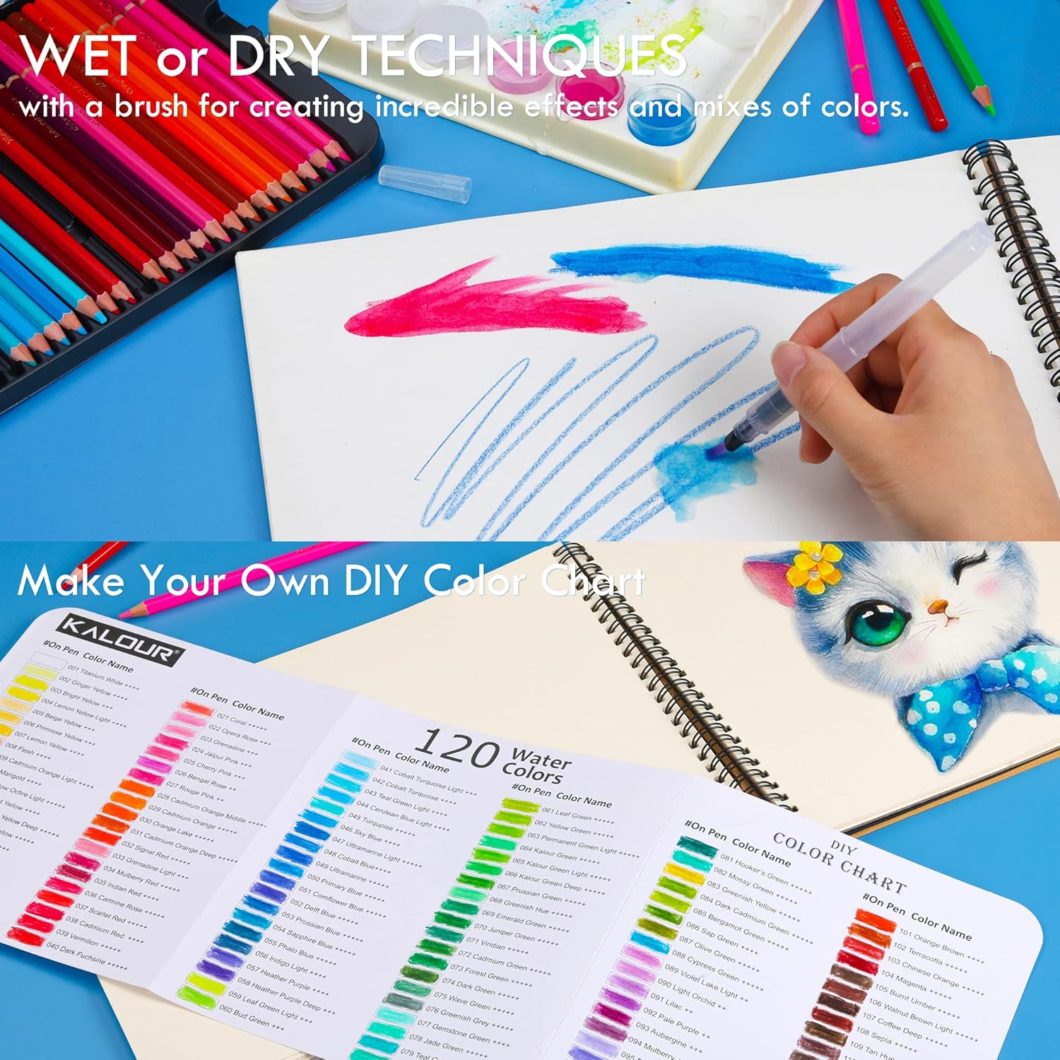 KALOUR Watercolor Pencils, 120 Colors, Blendable Wet or Dry, Water-Soluble Colored Pencils for Artists and Beginners