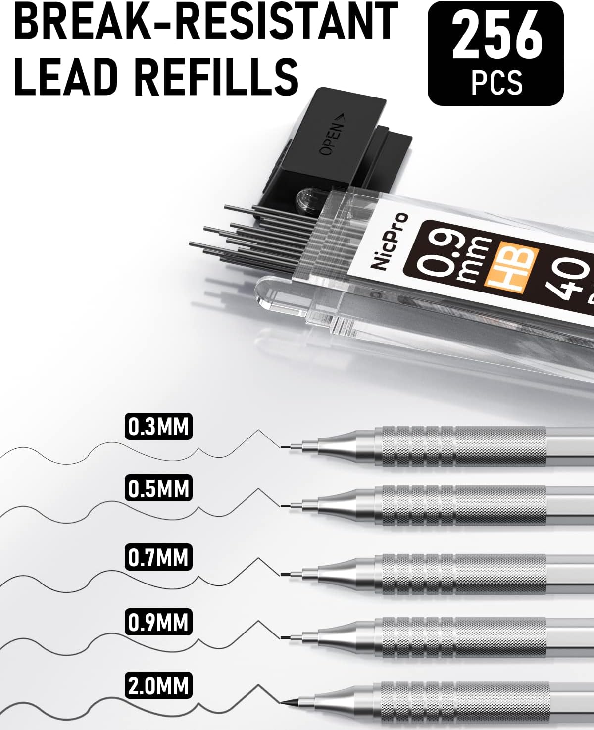 • Good Weight & Smooth Writing: The metal pencils have a full-metal body providing nice weight balance for fatigue-free writing and drawing. The mechanical pencil is pre-loaded with 0.3, 0.5, 0.7, 0.9, 2.0 lead, never needs sharpening, is super strong & smooth, produces a clear dark line.