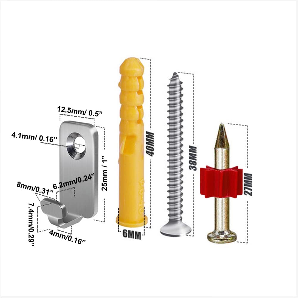 - 10pcs Wall mounted mini T-Head J-Hook, mounting nails, inserts, self tapping screws are included.