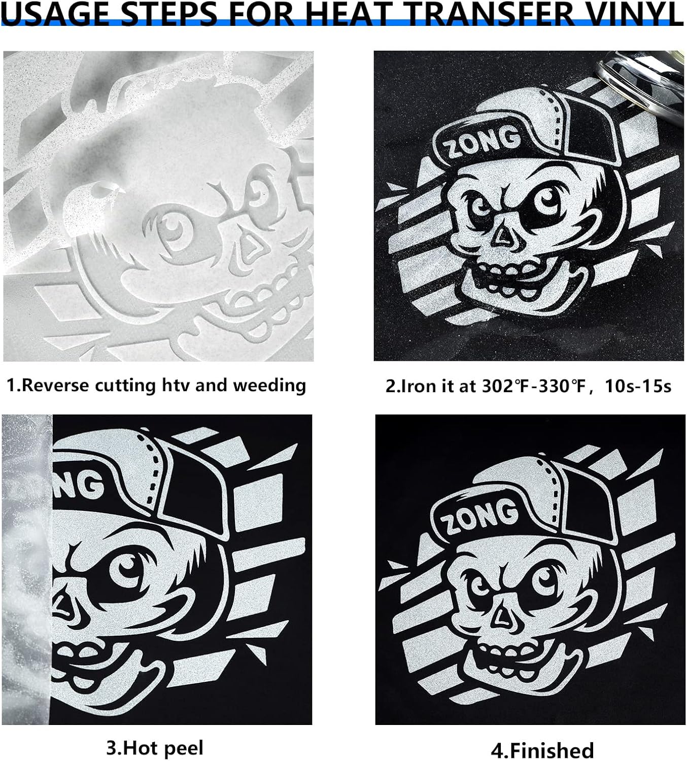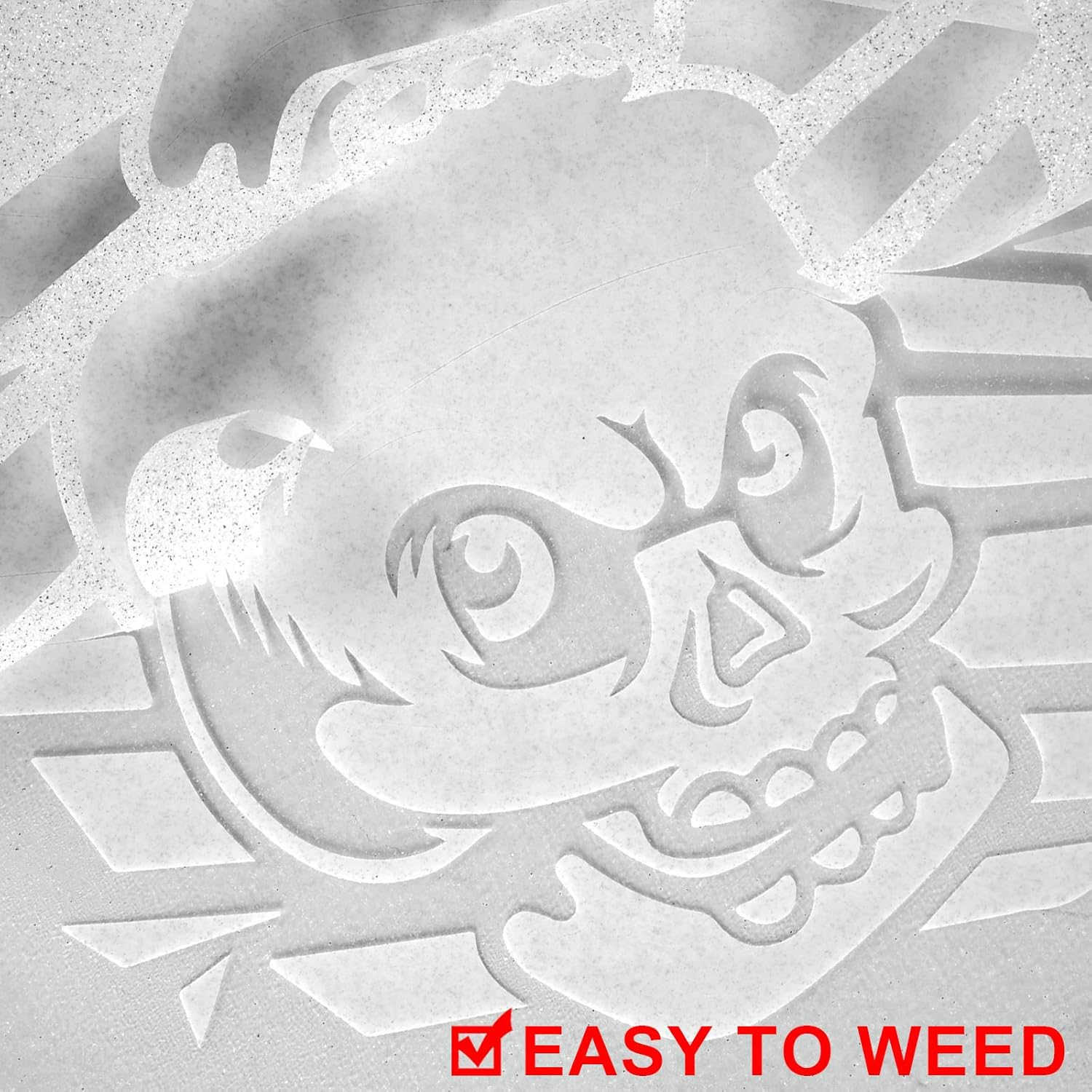- EASY TO CUT & WEED & TRANSFER: Our white glitter HTV Vinyl rolls is sensitive to temperature and pressure, which can be quickly and easily to weed and peel. It is compatible with all cutter machines, most heat presses and household irons on the market, and perfect for 12x12" and 12x24" cutting mats. You can easily apply adhesive backing HTV to fabric using a hot iron or hot press. Please note that it is warm peel