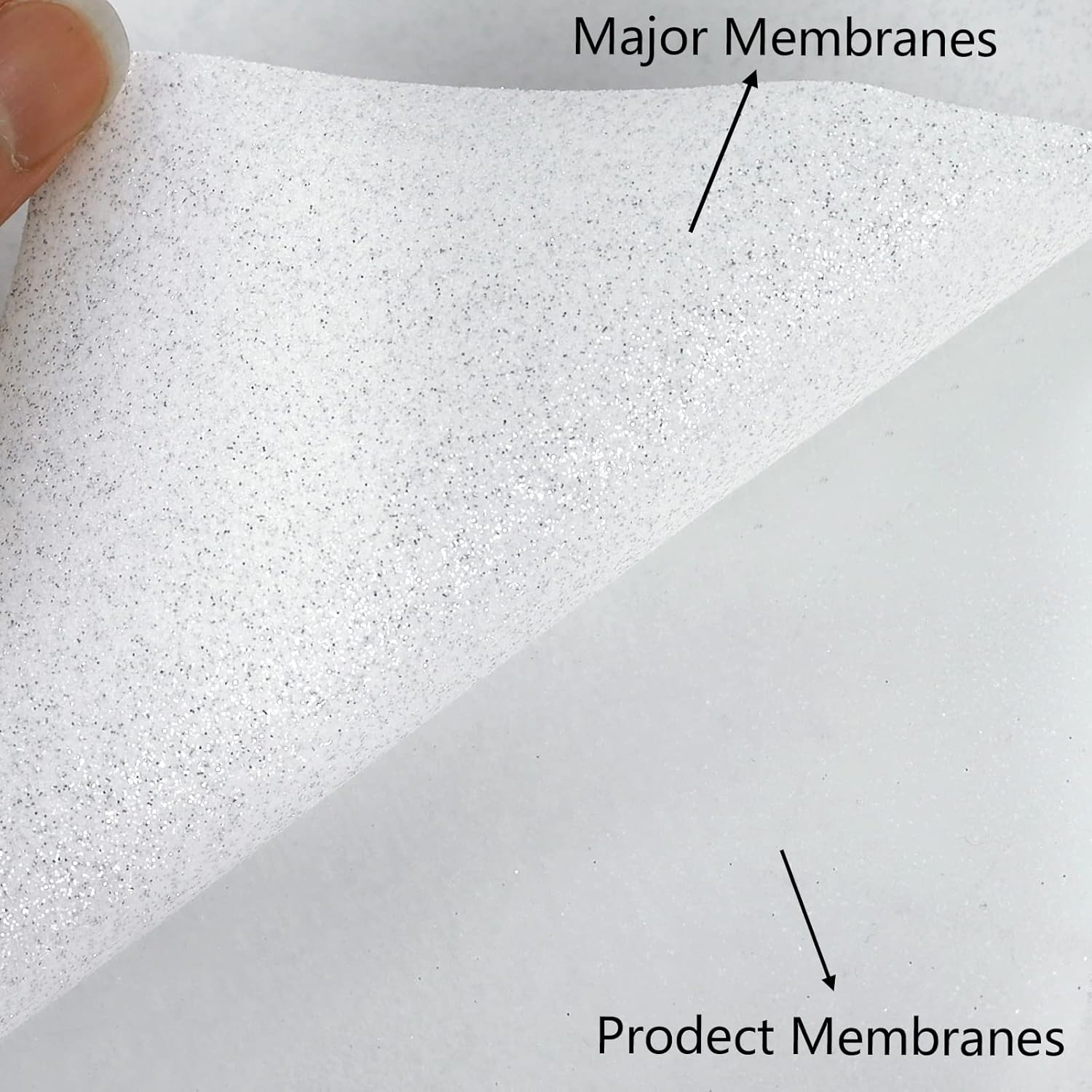 - GLITTER PU HTV VINYL ROLL: Our white glitter Heat Transfer Vinyl is made of high-quality and eco-friendly PU vinyl material, incredibly strong, durable, vibrant fine, and stretchy. Our white glitter iron on vinyl uses high quatity glitter, seals well, no residue, no powder. The surface of the glitter vinyl is very smooth after a special process treatment, which makes it easy to layer and apply