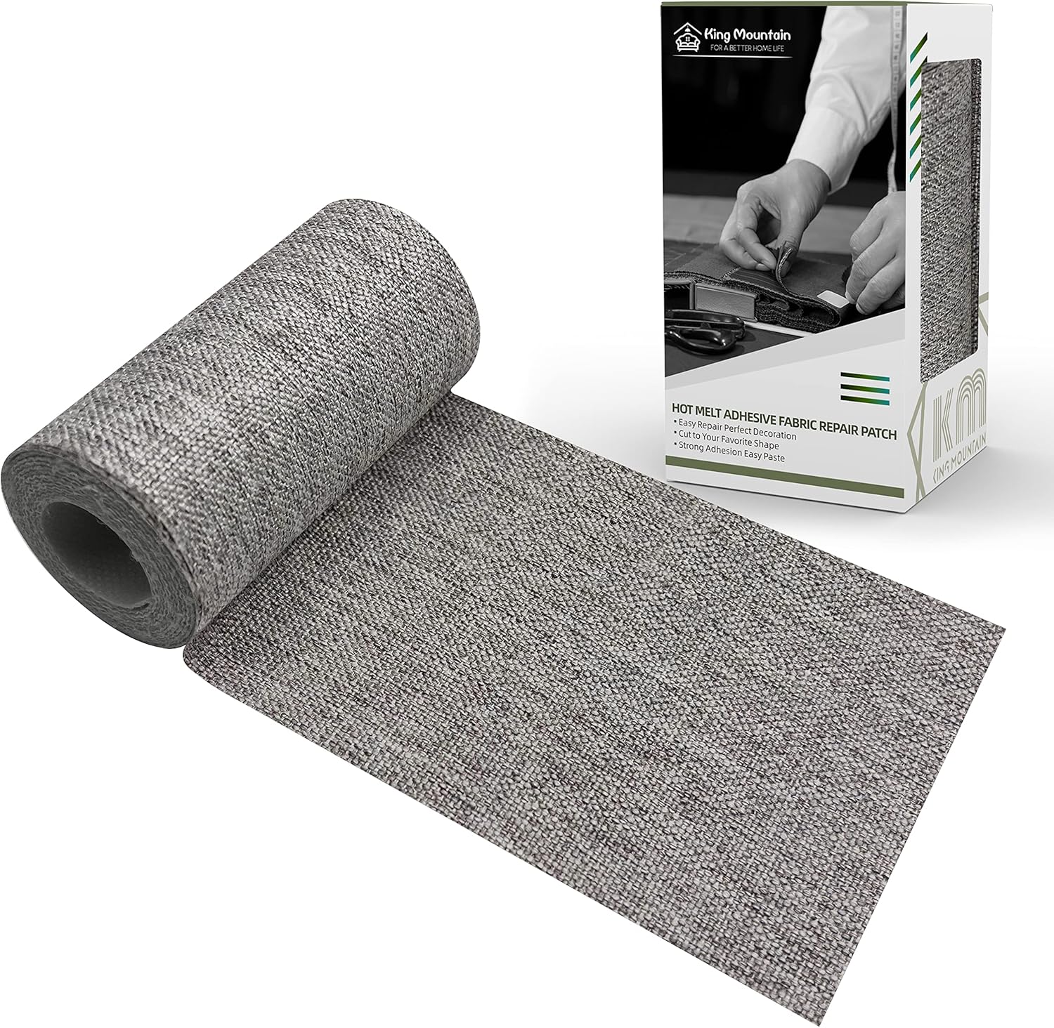 King Mountain Premium Linen Fabric Iron-on Repair Patch, Inside&Outside 3"x60" With Backing Glue, Decorative Kit (Medium Grey)
