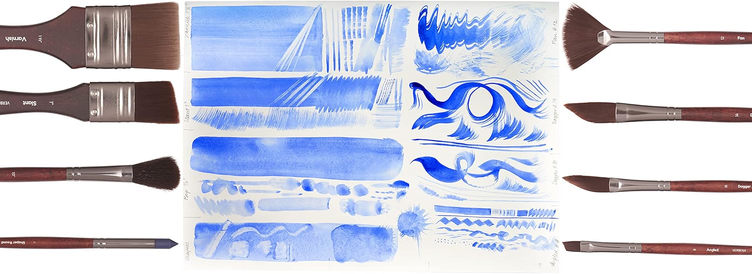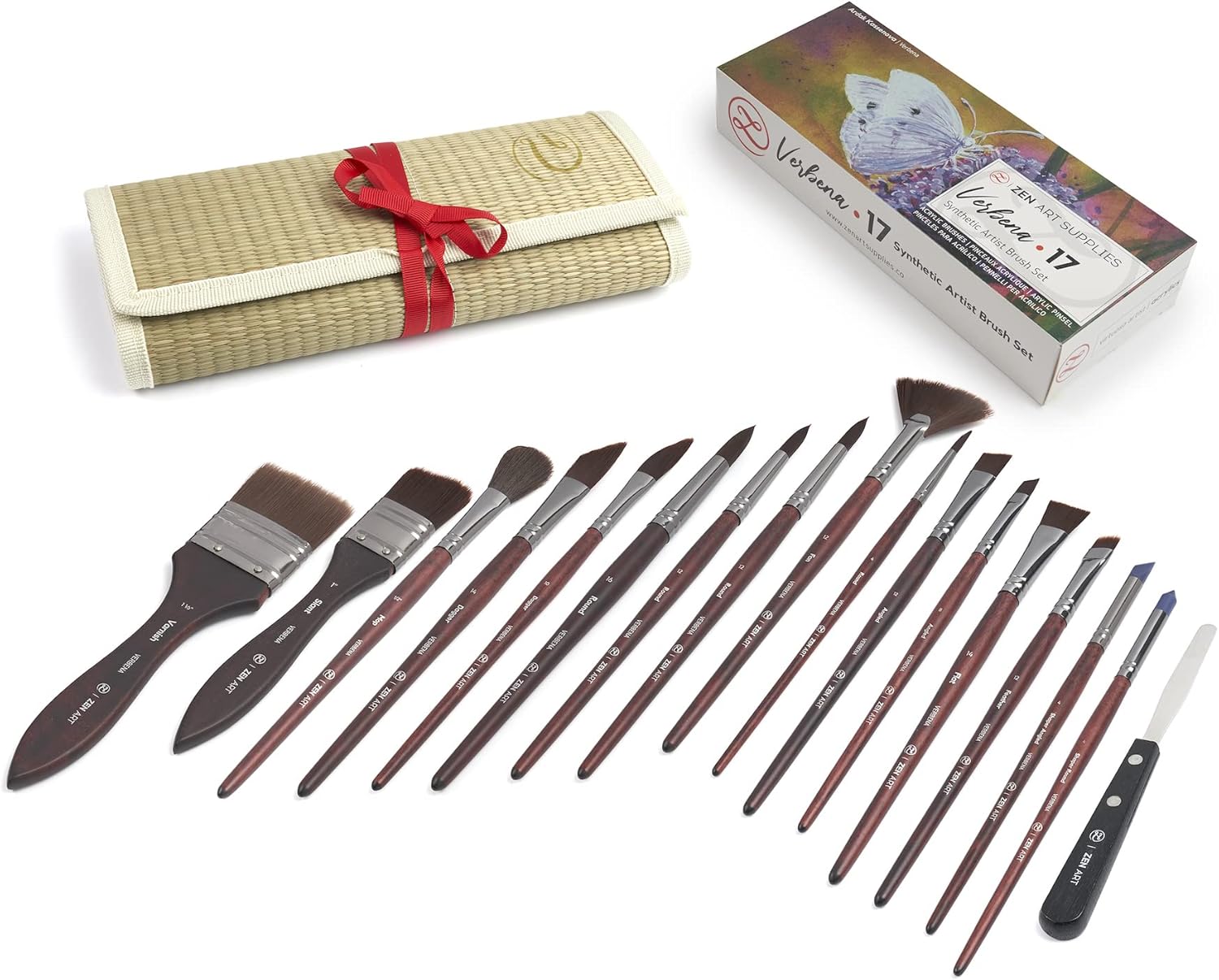 Professional Synthetic Brush Set for Acrylics - 17-Piece Artist Water Media Paint Brushes for Acrylics, Watercolor, Gouache. Beginner-Friendly with Great Flow Control and Snap - Verbena Set by ZenART