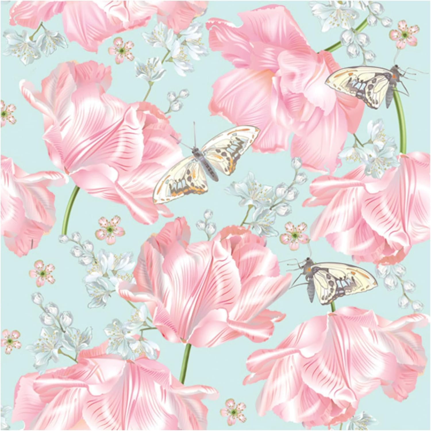 20-ct 13x13 Flowers Paper Luncheon Decoupage Napkins, 3-Ply Servilletas Printed Flower Pink Tulips Cocktail Napkin for Art, Dinner and Party, Disposable Napkins Decor