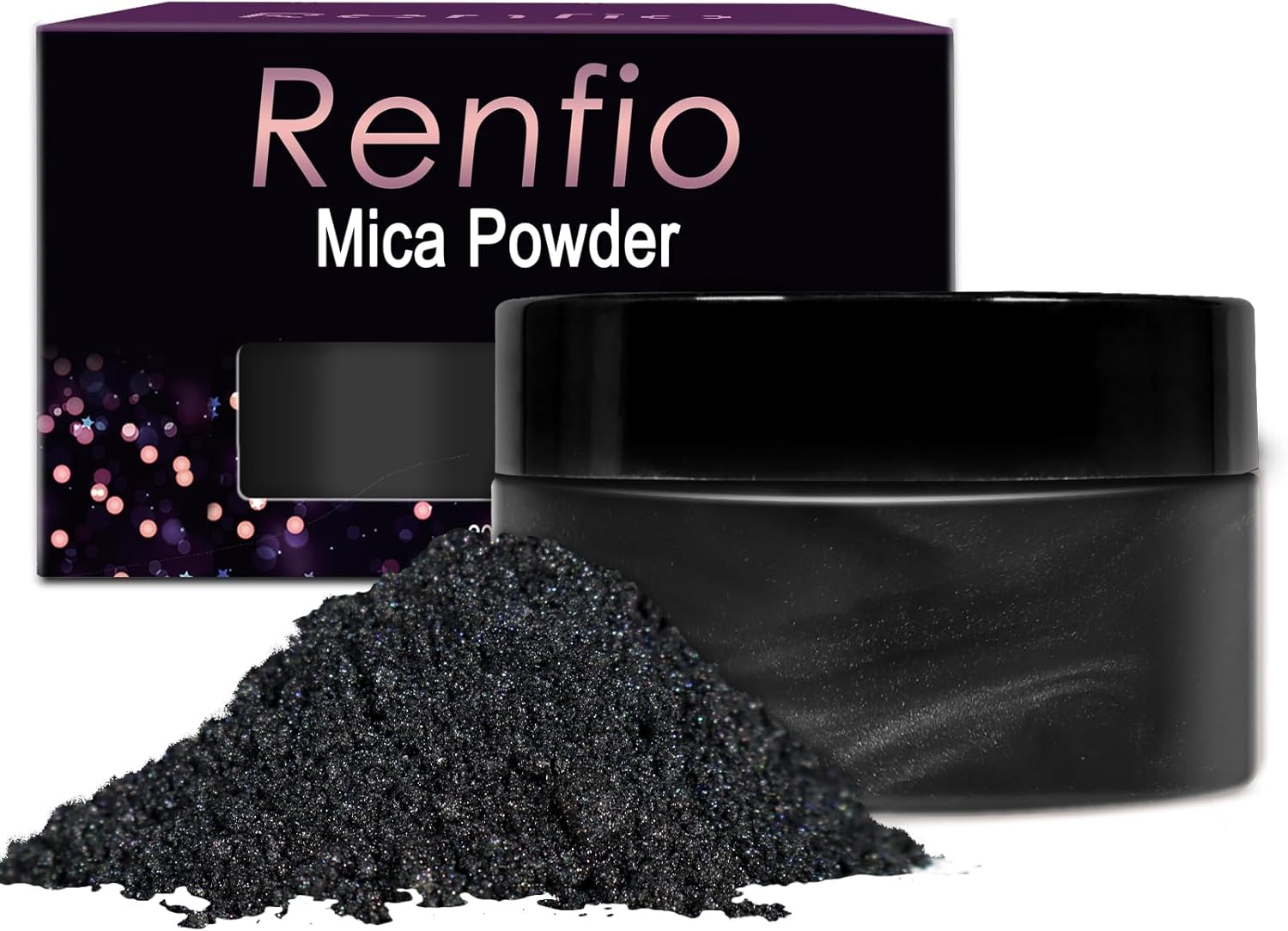 Renfio Mica Powder Pigment Natural Fine Powdered Pigments Pearl Shimmer Epoxy Resin Dye for Painting Soap Making Slime Bath Bombs 3.5 Oz(100g) - Deep Black