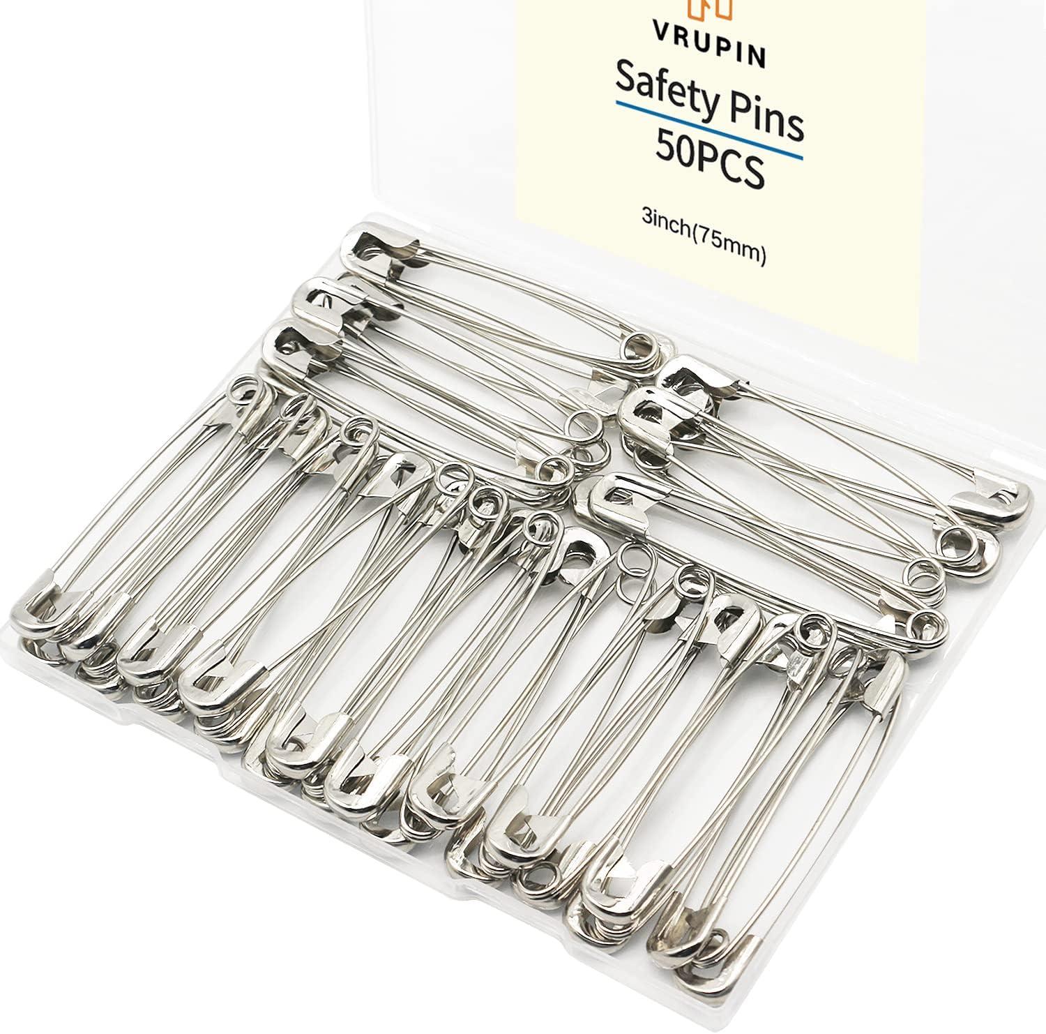 vrupin 50PCS Safety Pins, 3Inch/76mm Safety Pins Metal Nickel Plated Steel Sewing Accessories Kit for Baby Clothing, Crafts & Arts