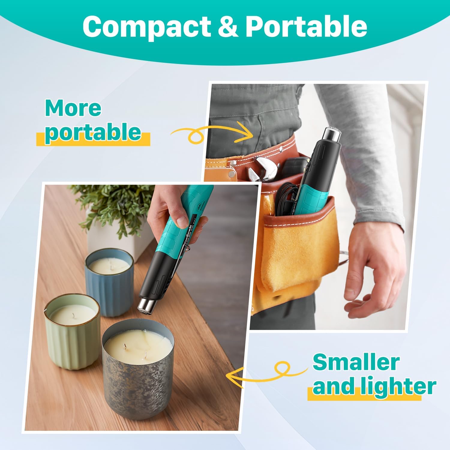 - ►【High Quality & Wide Application】The heat gun is made of high quality ABS plastic shell and stainless steel air outlet, which are resistant to high temperature, corrosion and long-lasting service life. The pure copper motor provide you a low-noise environment and compared with traditional ones, it can save more power. If you like DIY, it is an excellent small tool. Perfect for resin, embossing powders, shrink wrap, vinyl wrap, decals, jewelry making, candle making