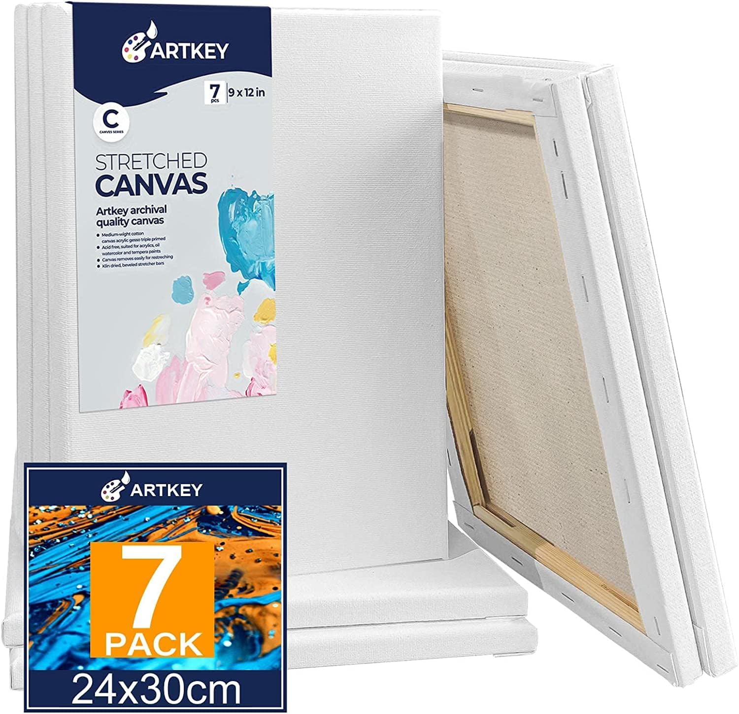 Stretched Canvases for Painting 9x12 Inch 7-Pack, 10 oz Triple Primed Acid-Free 100% Cotton Blank Canvas, Rectangular Canvas for Oil Paint Acrylics Pouring & Wet Art Media