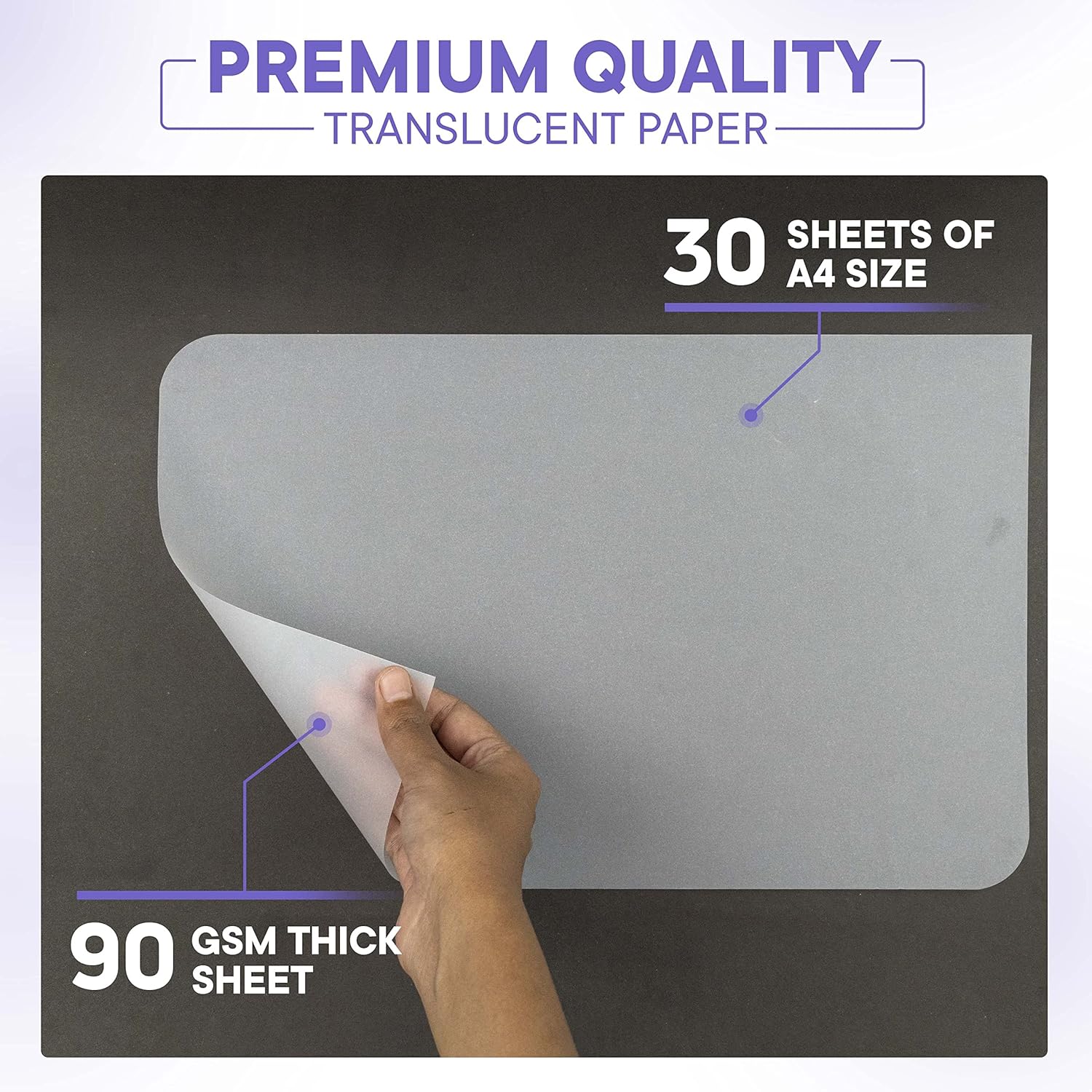 - FINE QUALITY TRACING - If you are a professional designer who needs durable tracing paper which can use with drawing pencil and pens, A4 tracing papert (90 GSM), pack of 30 sheets would be an ideal choice for you. For scrapbooking and embroidery designs