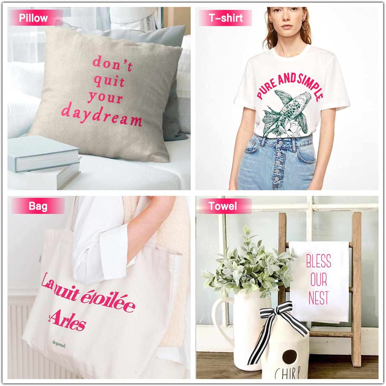 - 【USE WIDELY & SAVE TO WEAR】Your shirt, tote bags, sportswear, aprons, hat and pillow, which use our white htv, make you stand out from the crowd. Heat transfer vinyl is suitable for athletic mesh fabrics, Cotton, polyester and cotton blend, lycra/spandex, textiles etc. Our htv vinyl materials are SGS certified and are safe to wear