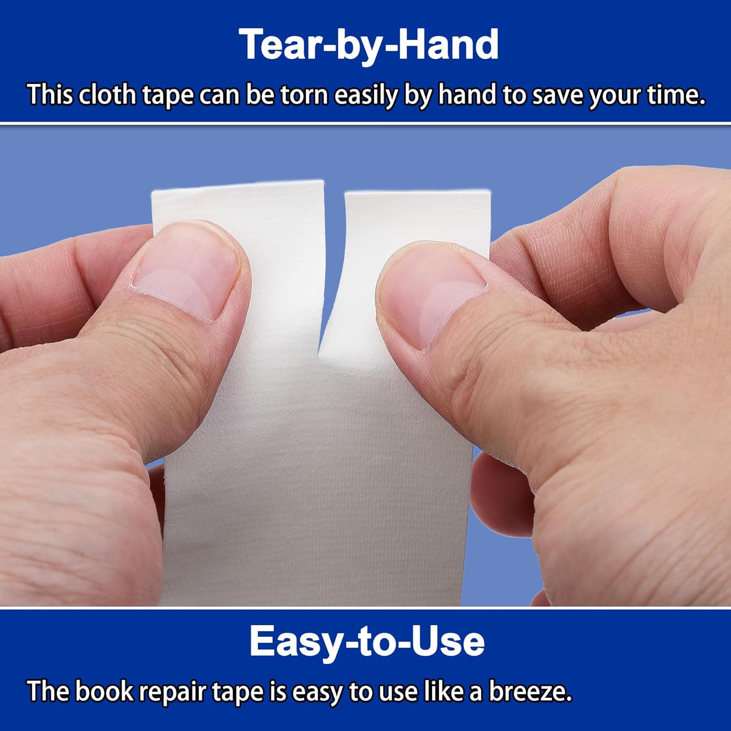 - Material: Each book repair cloth tape is made of a non-reflective durable fiber with strong adhesive, which is very easy to tear by hand but with strong holding power. No Residue Behind.