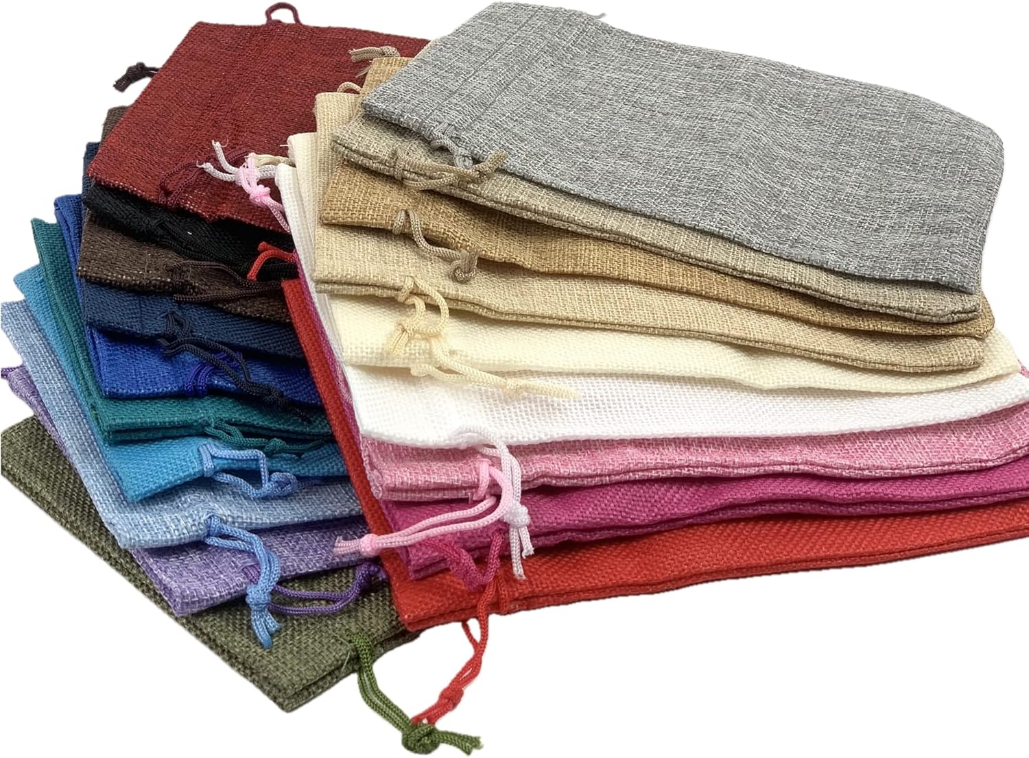 - Palmhomee Pack of 20 Burlap Gift Bags with Drawstring Linen Jewelry Pouches Wedding Hessian Jute Bags for Birthday Jewelry and Treat Pouches Party Wedding Favors Gift Art and DIY Craft (6x8 Inch, Mixed Colors)