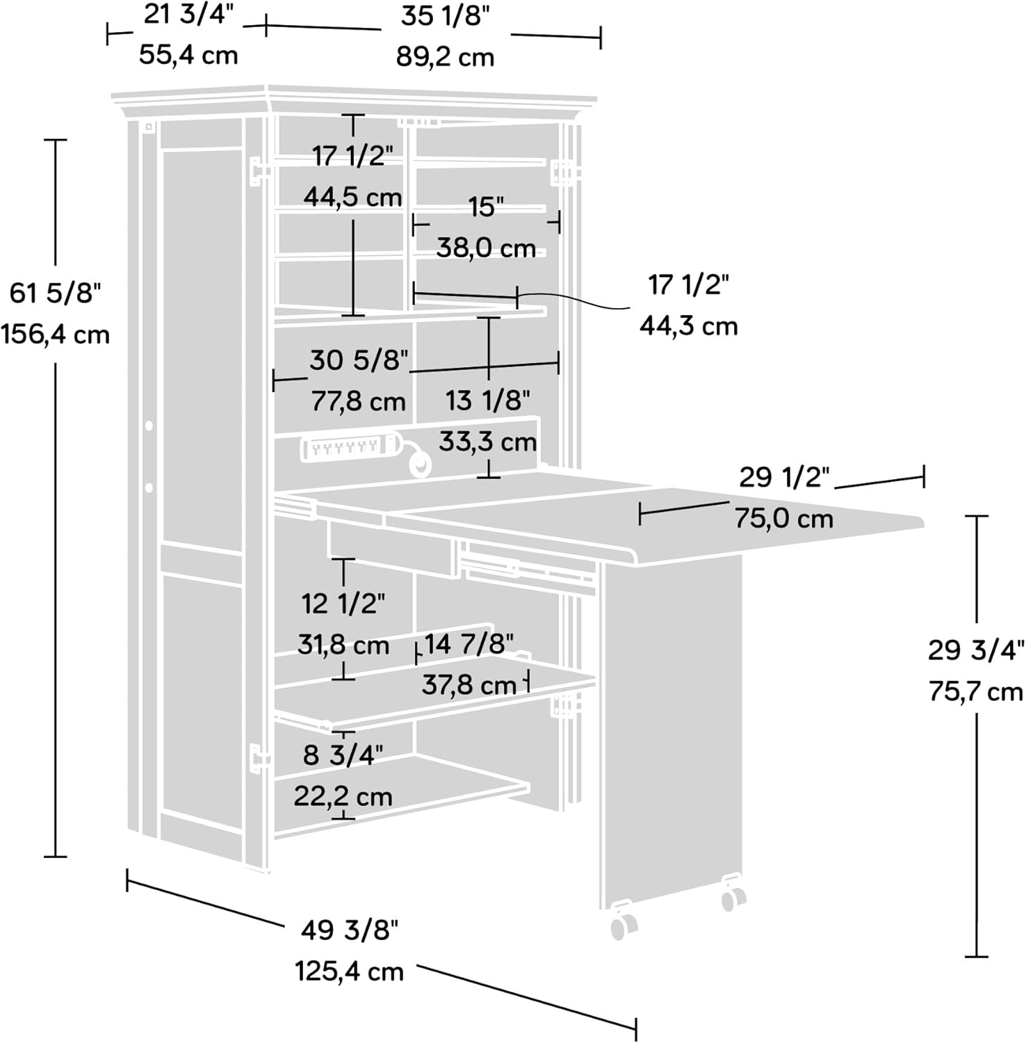 - EXPANDABLE WORK SURFACE β Featuring a slide-out shelf with full extension slides and a drop leaf extension, this armoire offers extra workspace for your projects, whether you're finishing a puzzle or crafting with friends