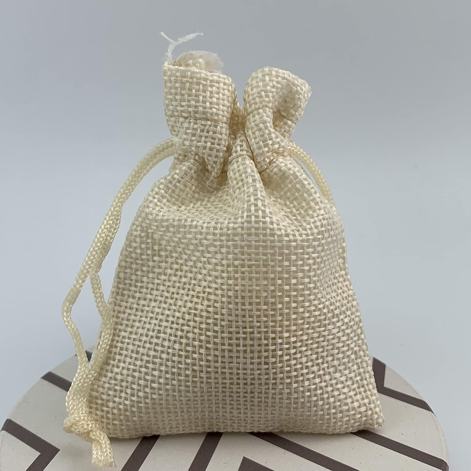 - Palmhomee Pack of 25 Burlap Gift Bags with Drawstring Linen Jewelry Pouches Wedding Hessian Jute Bags for Birthday Jewelry and Treat Pouches Party Wedding Favors Gift Art and DIY Craft (2.8x3.6 Inch, Cream)