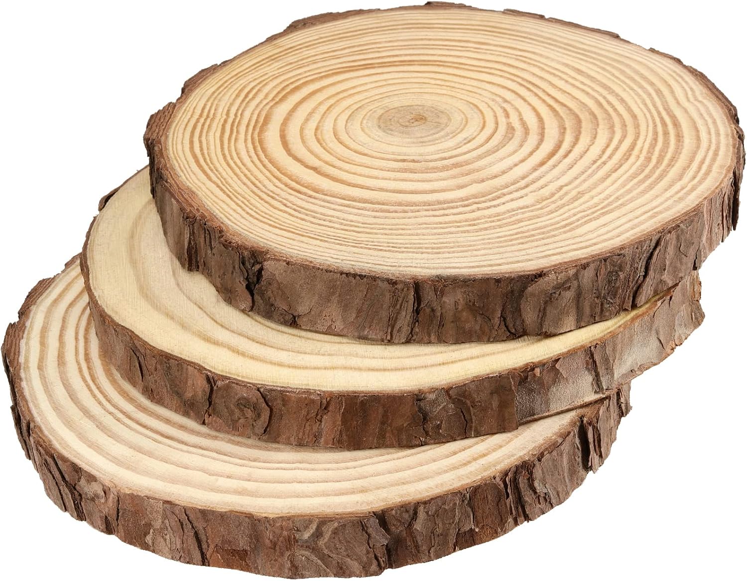 - NATURAL BEAUTY - These wood slices made from natural pine are really nice. They smell, feel and look great. Decent sizes and fairly similar. They're big enough for simple or detailed designs. Not too thin or too thick. They all have beautiful wood grain patterns.