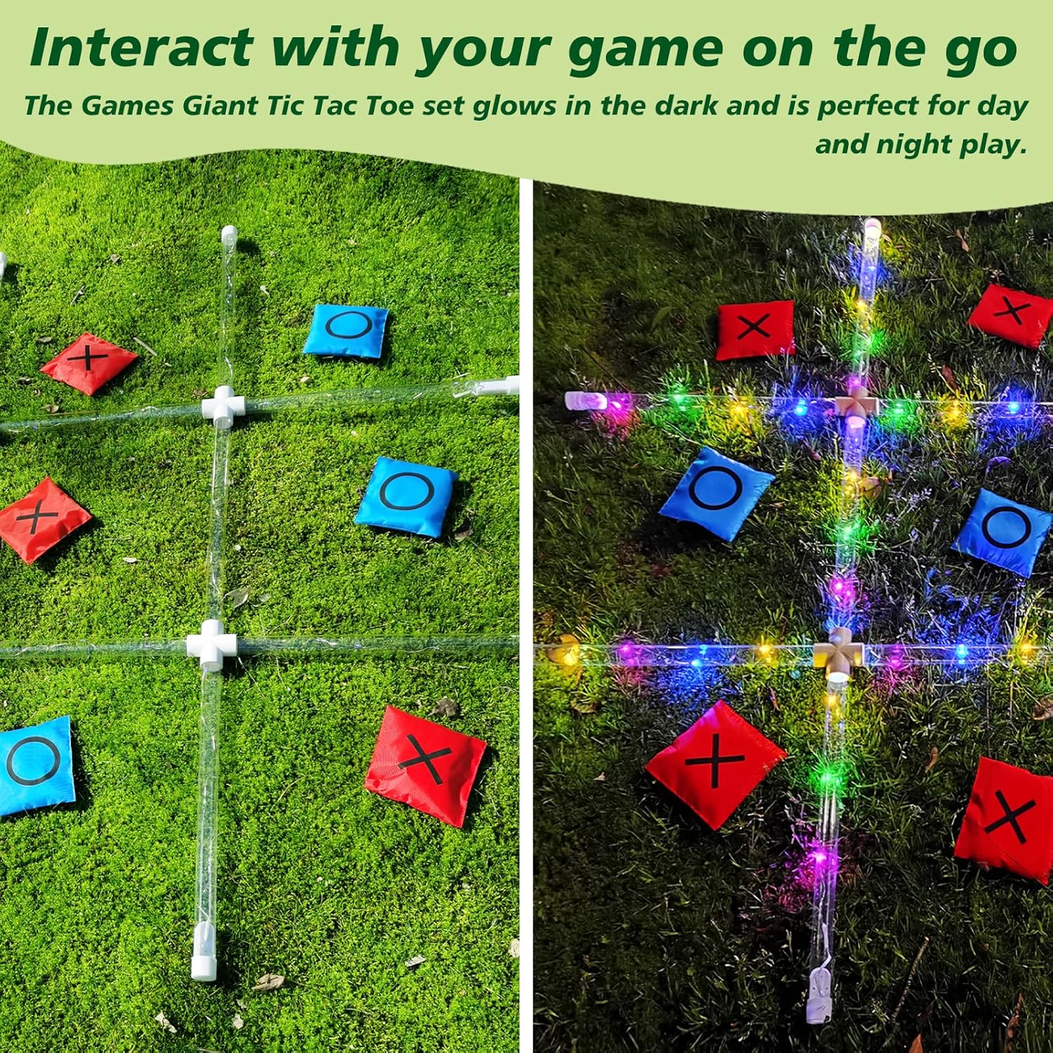 - ⭕❌【 Giant Yard Games for Kids and Adults 】: This giant tic tac toe game equipped with LED lights and will light up at night. This will definitely be the most eye-catching at a party. At the same time, adults and kids can also play, regardless of age, they can feel the charm of the game together.