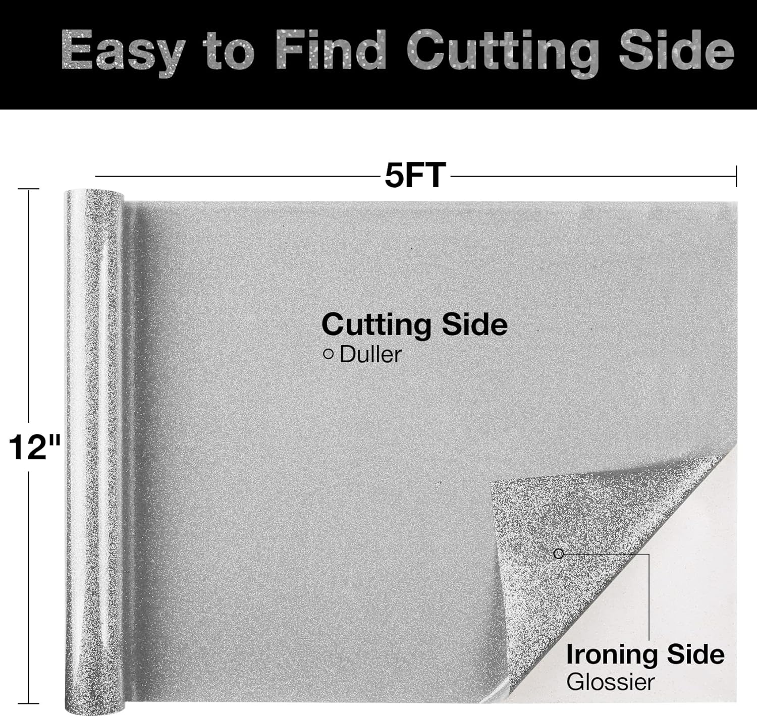- Size & Color: Dimension of this glitter heat transfer vinyl is 12 inches x 60 inches/5 ft. Each package includes 1 roll glitter htv. Red, gold, silver, white, black, green, pink, purple, yellow, orange and royal blue colors are available