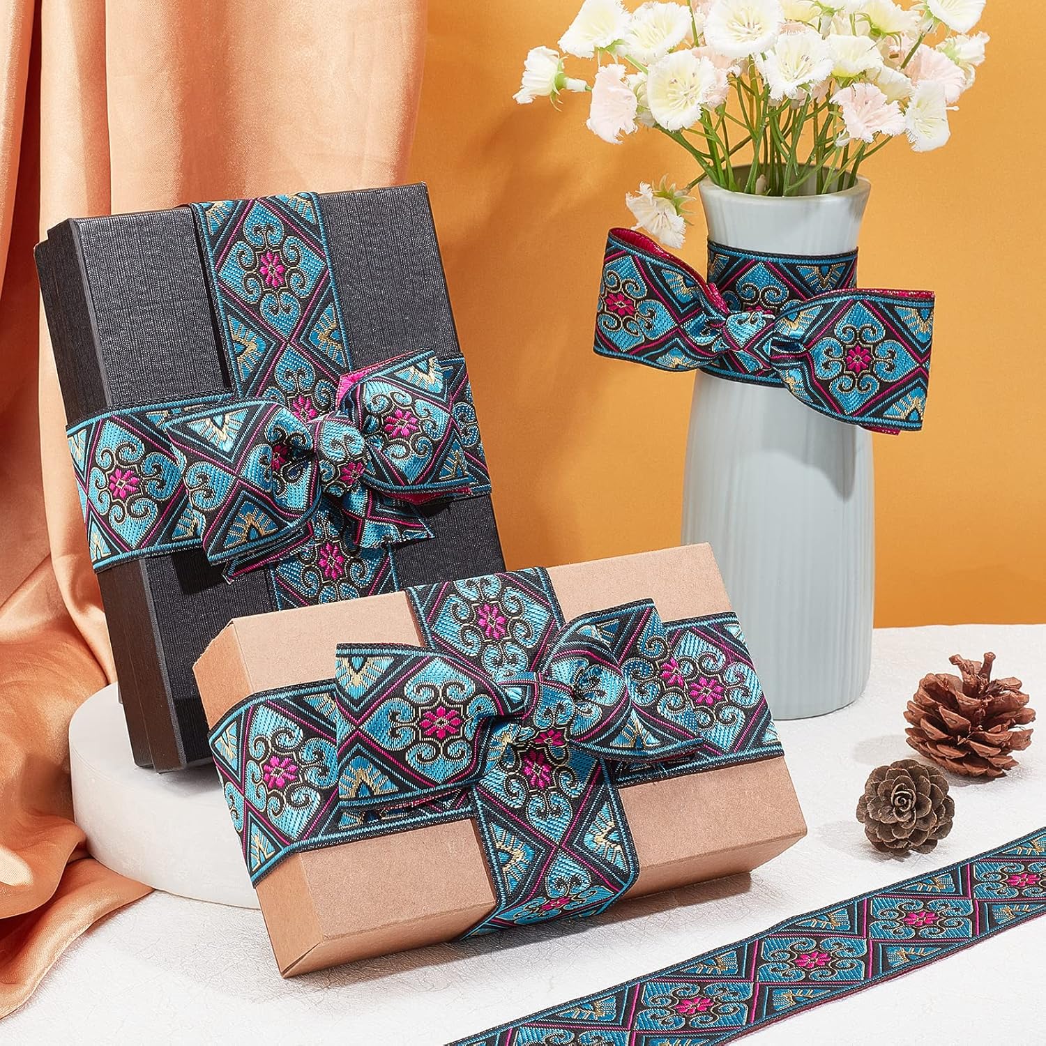 PH PandaHall 2 Inch Embroidered Woven Ribbon, 7 Yards Vintage Jacquard Ribbon Boho Flowers Straps Fabric Trim for Bohemian Persian Clothes Bag Holiday Christmas Decor Gift Wrap Decor