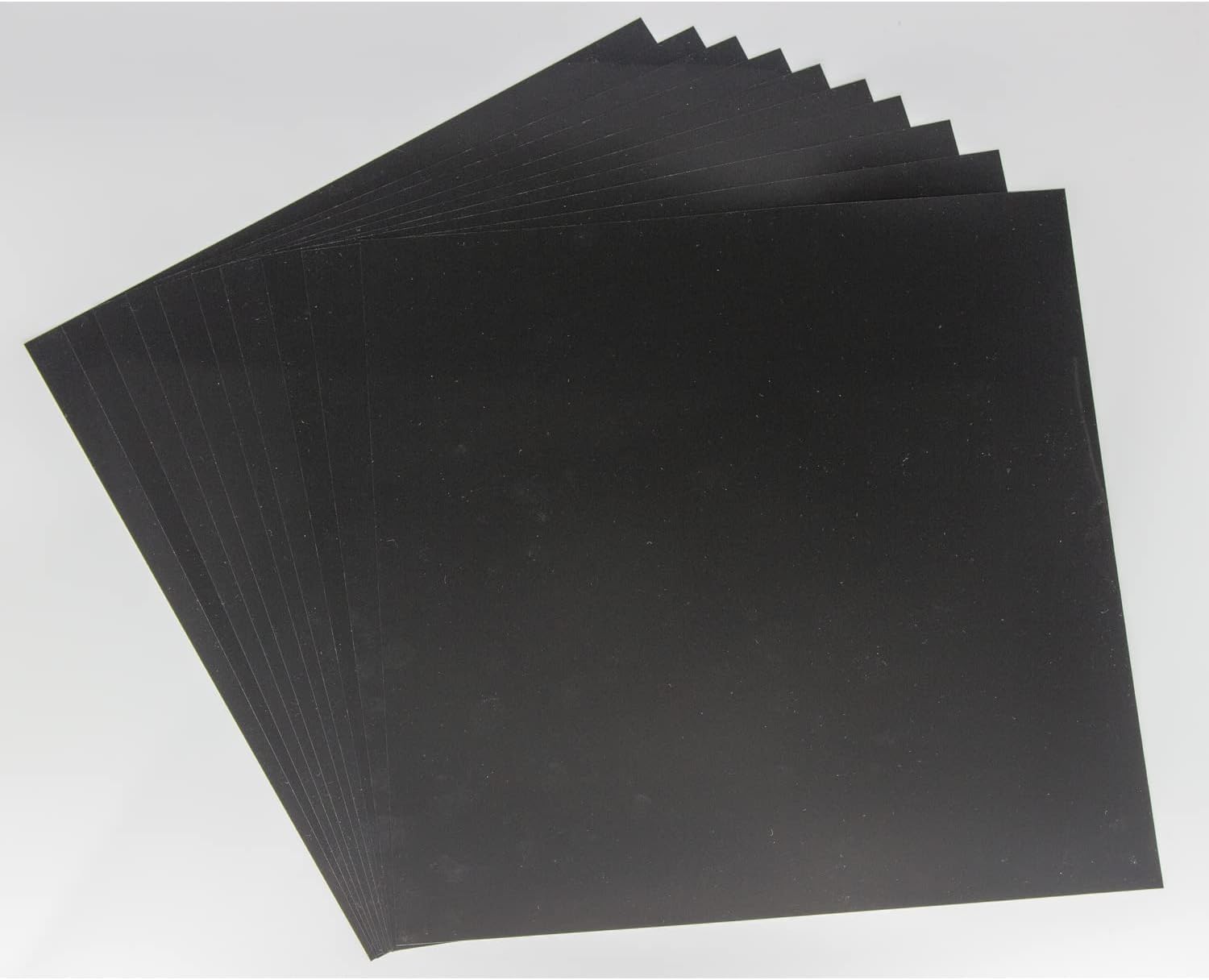 Opaque Black Plastic Sheets, 7.5mil (.0075") 12” X 12” Craft PET Film, PET Stencil Material, Glossy and Flexible Plastic Sheet for Crafts, Cricut, Silhouette Cameo, Sign Makers (10 Pack)