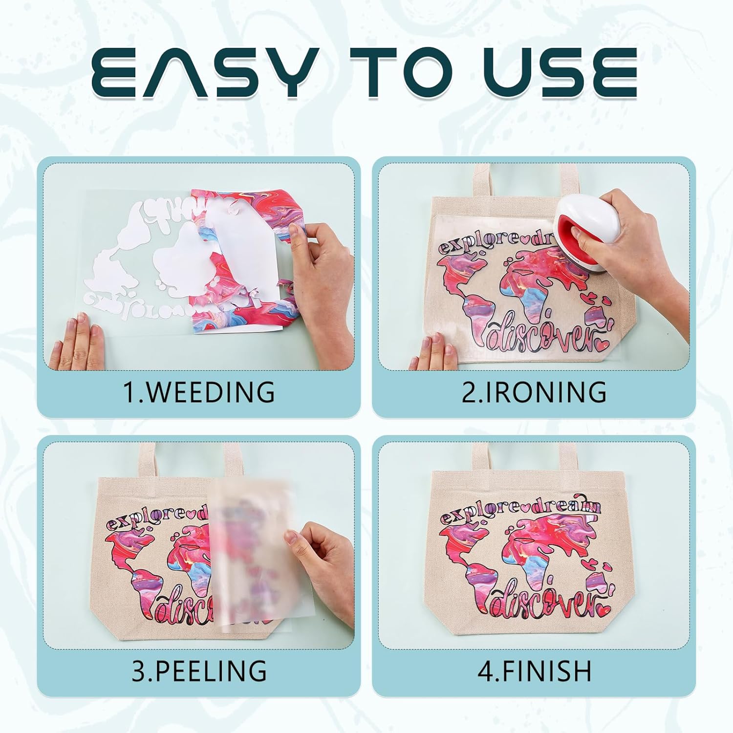 - 【Working Easy on Cut ,Weed & Transfer 】This heat transfer vinyl is easy to cut ,weed and transfer your designs on heat transfer vinyl bundle.You can heat firmly with heat press machine and also normal iron to transfer.