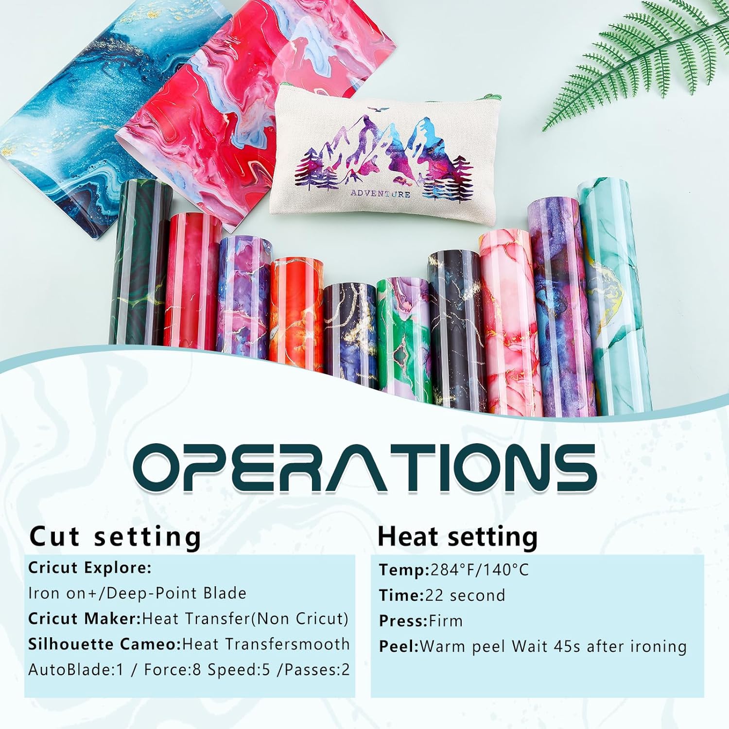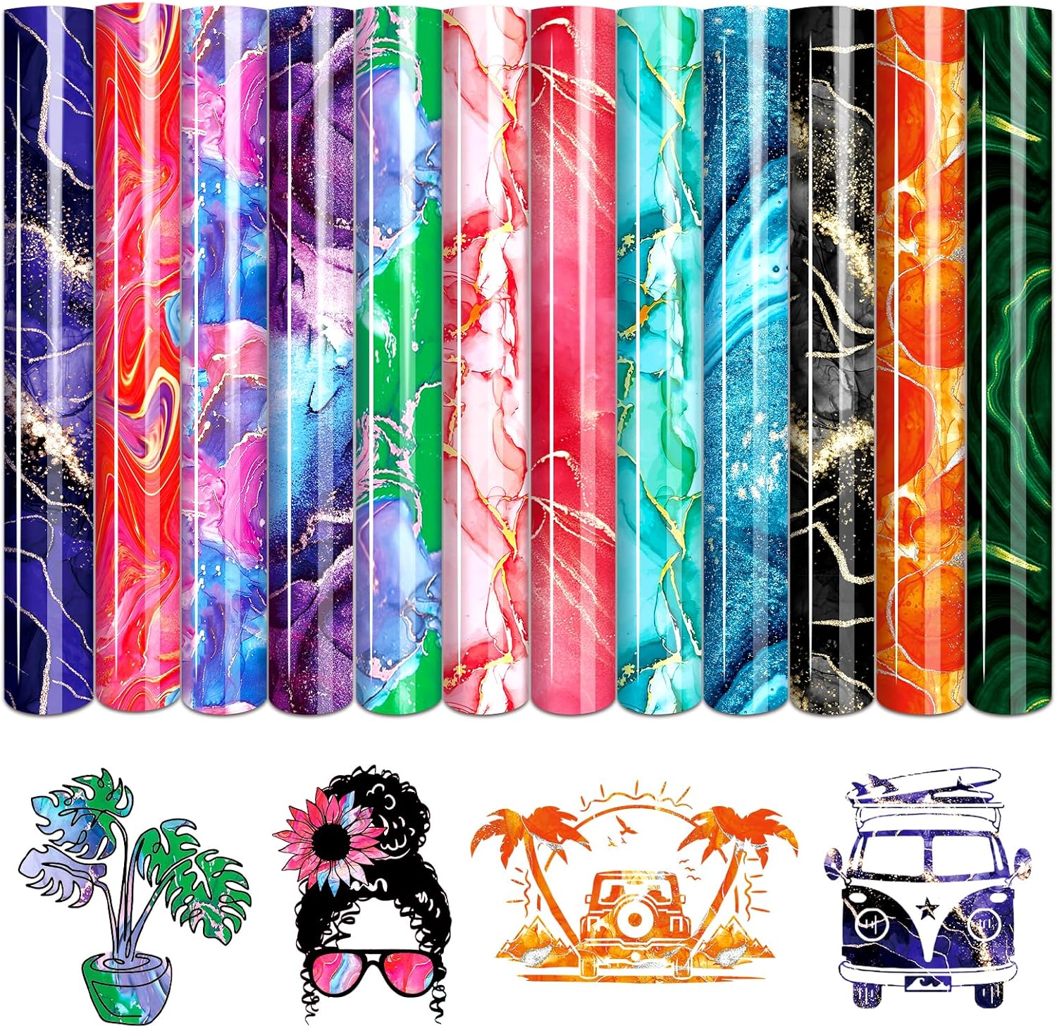 - 【Different Designs & Mutil-Color】This Marble Heat transfer vinyl Set include 12 sheets with different colors and designs ,Enough quantities for you to create your Diy crafts