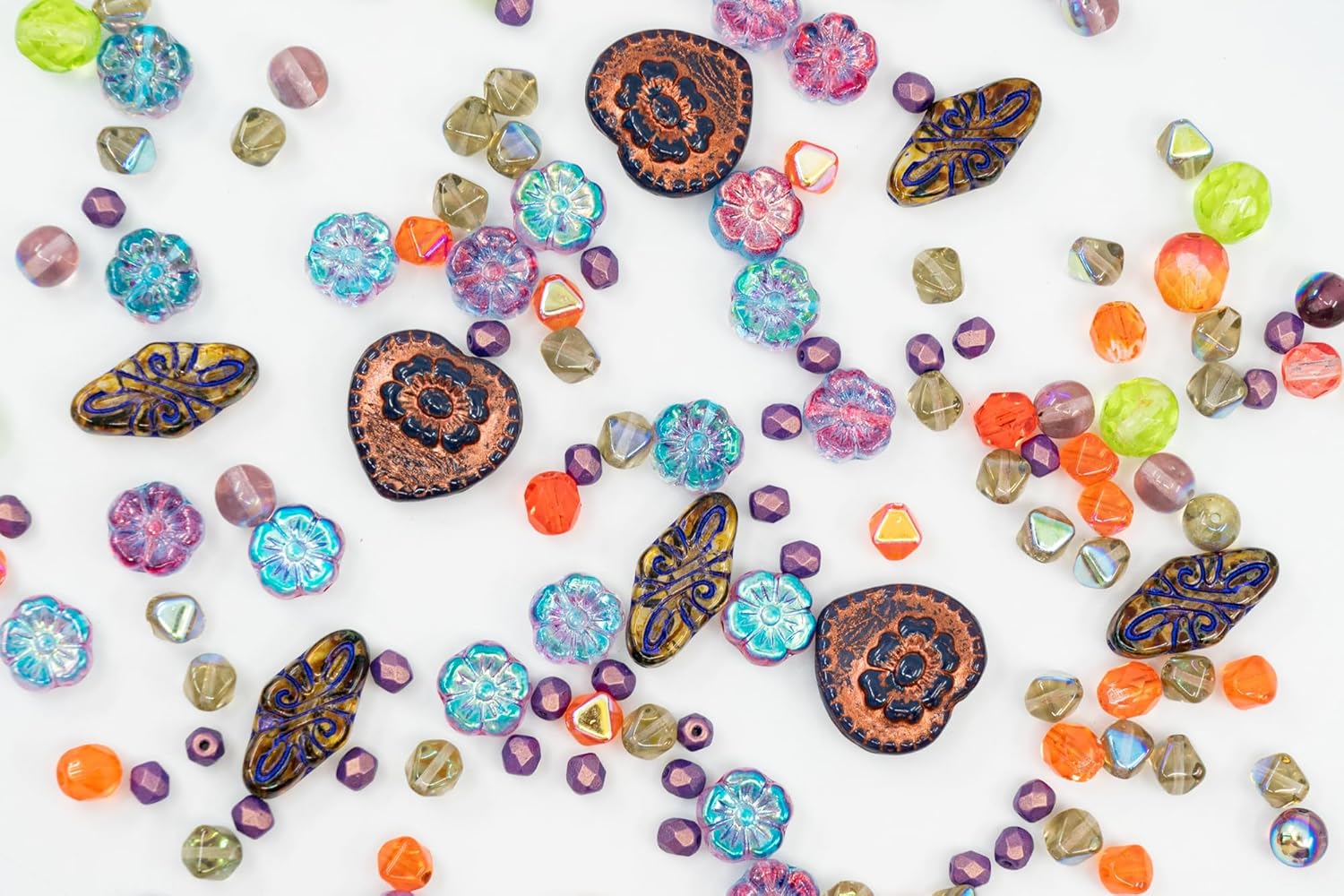 - ⭕️ COLOR ► Violet Purple Green Copper Crazy Mix with heart and flower beads
