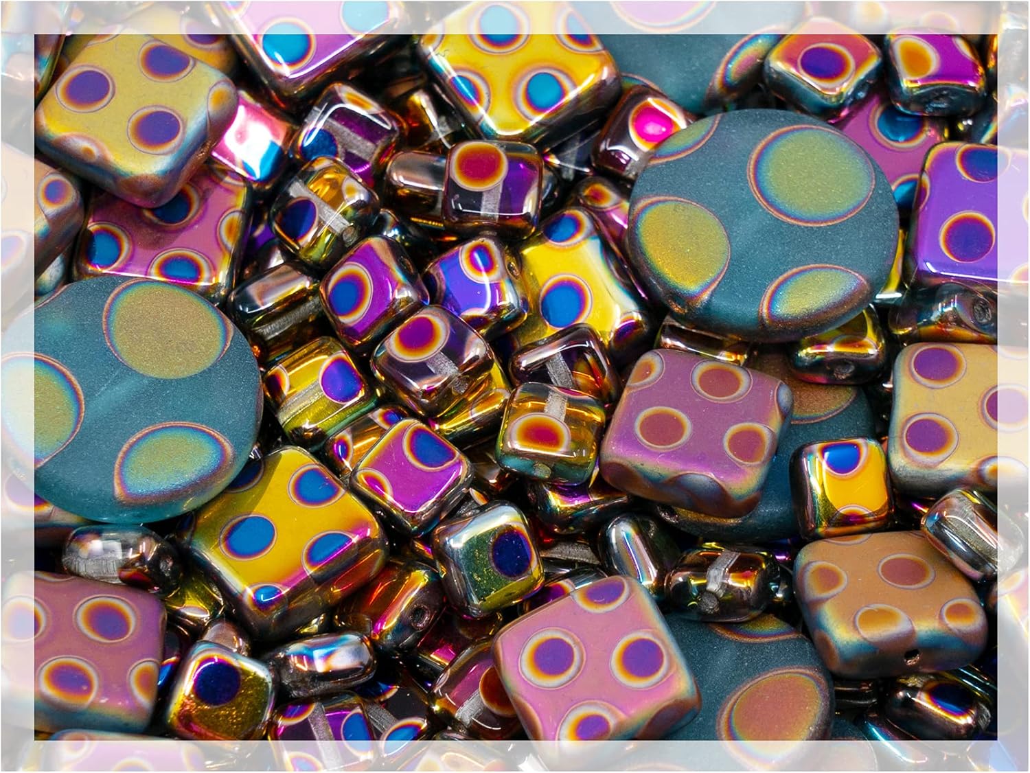1.75 oz (50g) Mix of Unique Czech Bohemia Glass Pressed Beads, Blue Violet Pink Vitrail Sliperit, Dot Patterned, Matte and Glossy, Hand Made BCV