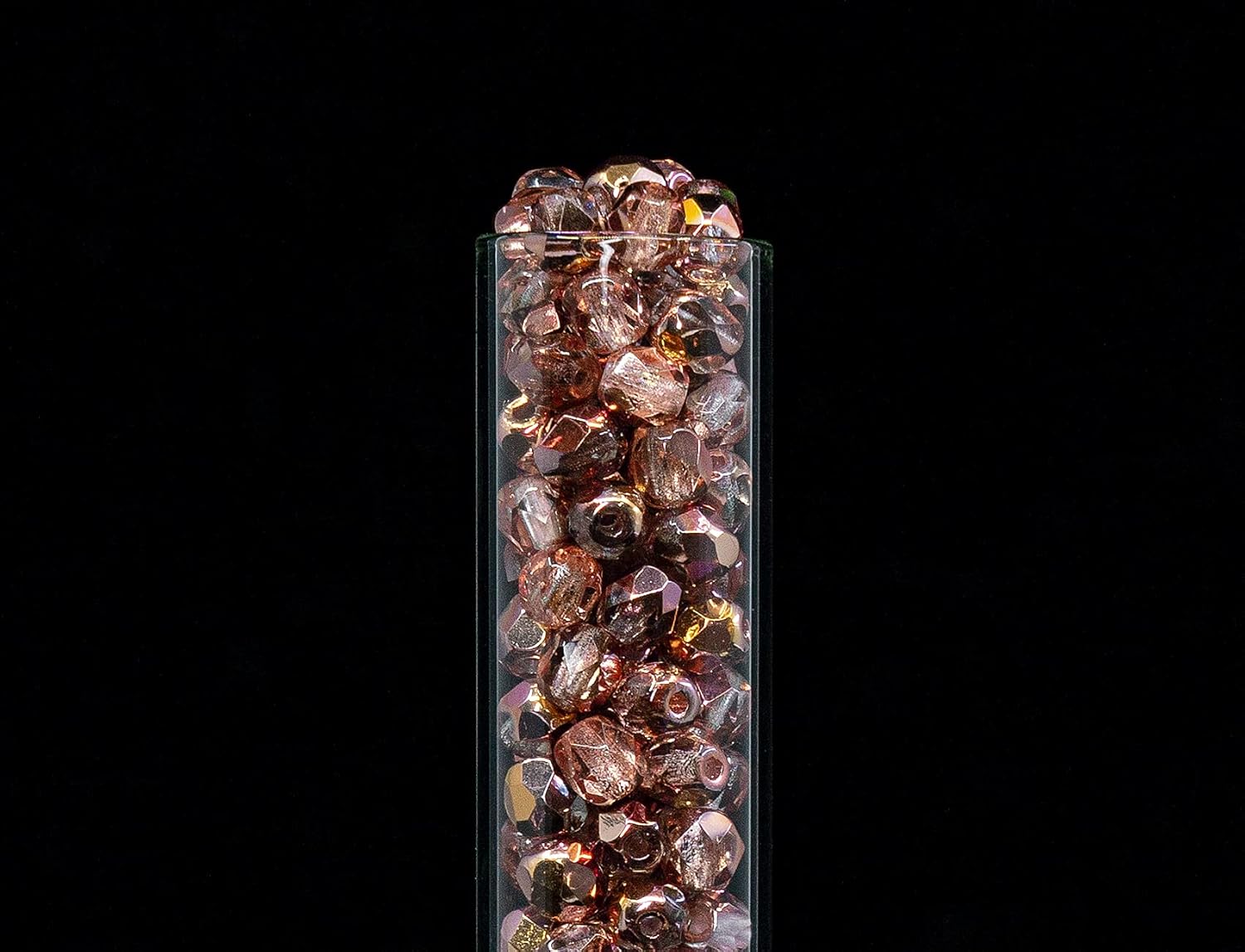 1.8 oz (50g, Approx. 600pcs) of Faceted Fire Polished Pressed Czech Glass Beads 4mm (0.16in), Crystal Copper Capri Apollo 00030-27101 BCV