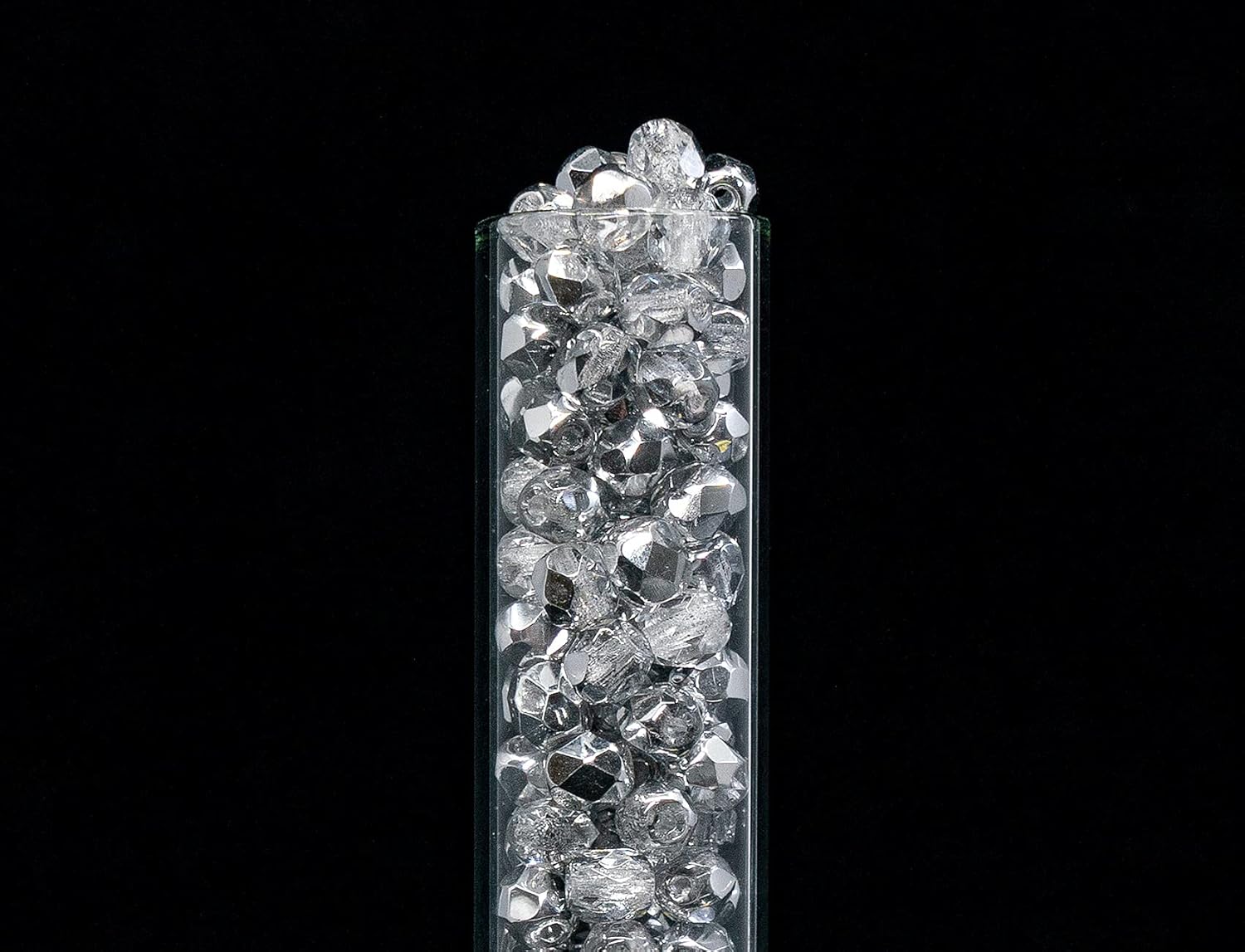 1.8 oz (50g, Approx. 600pcs) of Faceted Fire Polished Pressed Czech Glass Beads 4mm (0.16in), Crystal Silver Aluminum Labrador 00030-27001 BCV